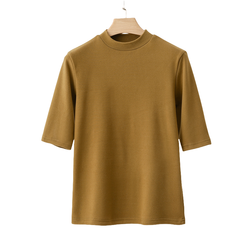 秋冬德绒半高领五分袖T恤女内搭中袖秋衣加绒加绒打底衫修身保暖