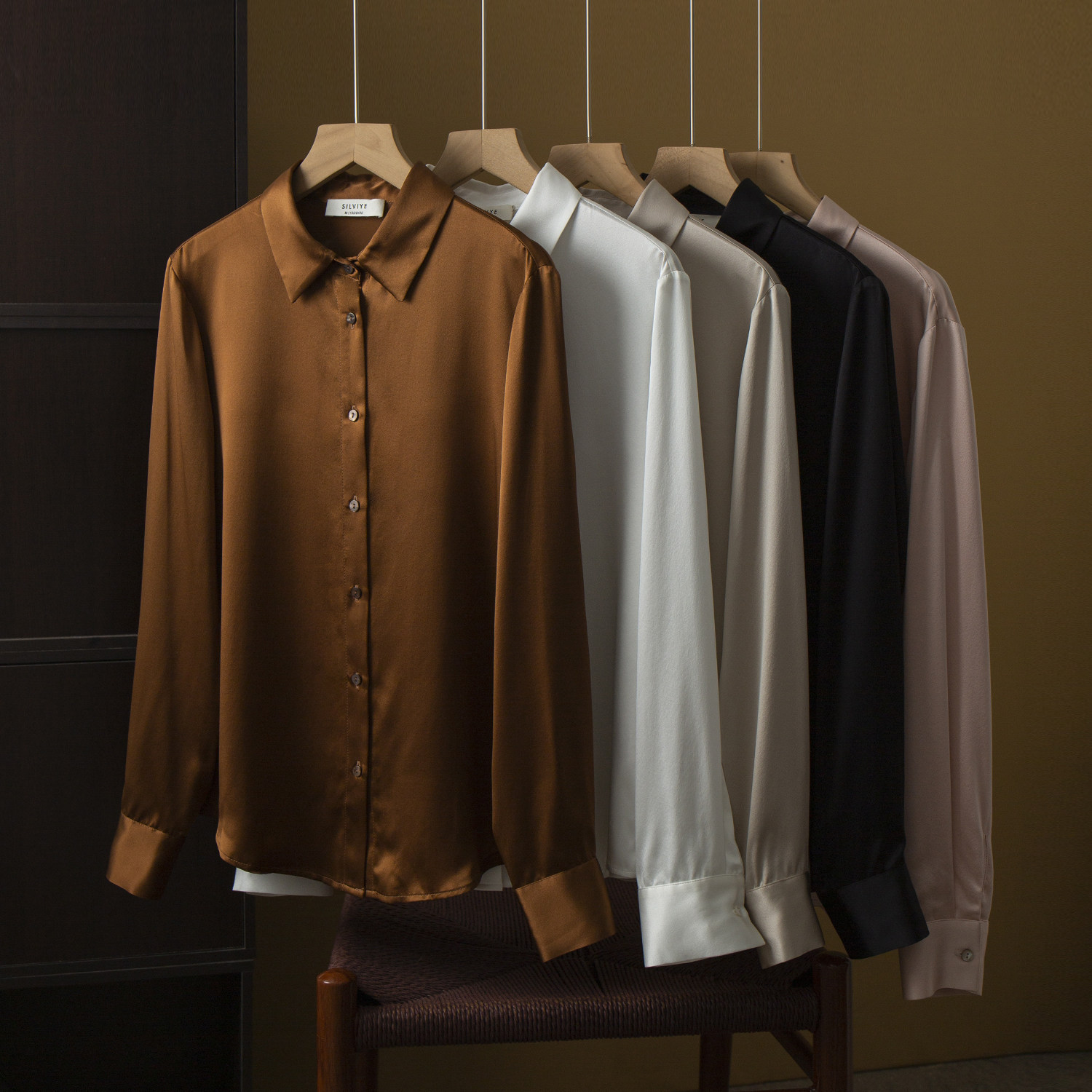丝艺100%桑蚕丝30姆米重缎真丝长袖衬衫女轻奢通勤缎面衬衣上衣春
