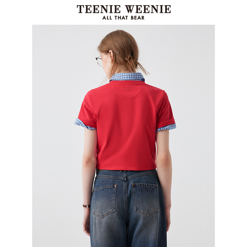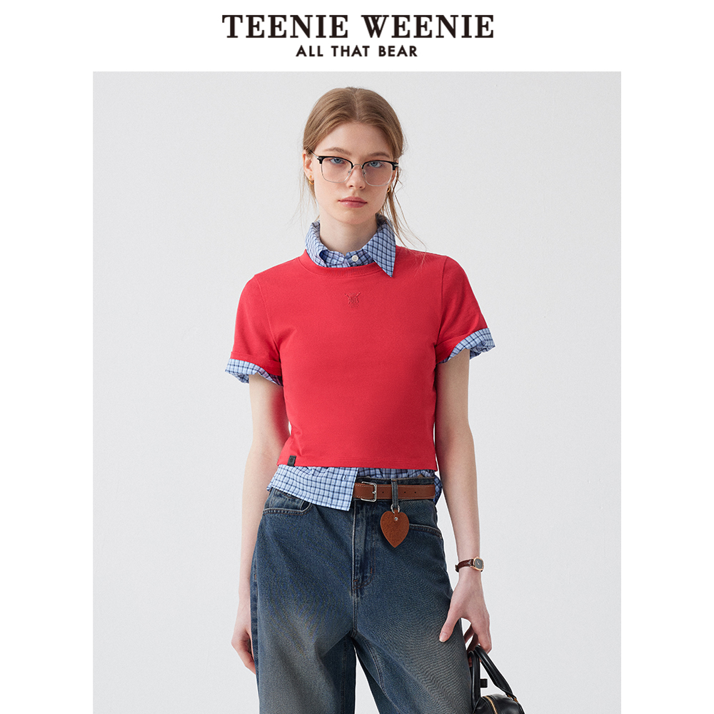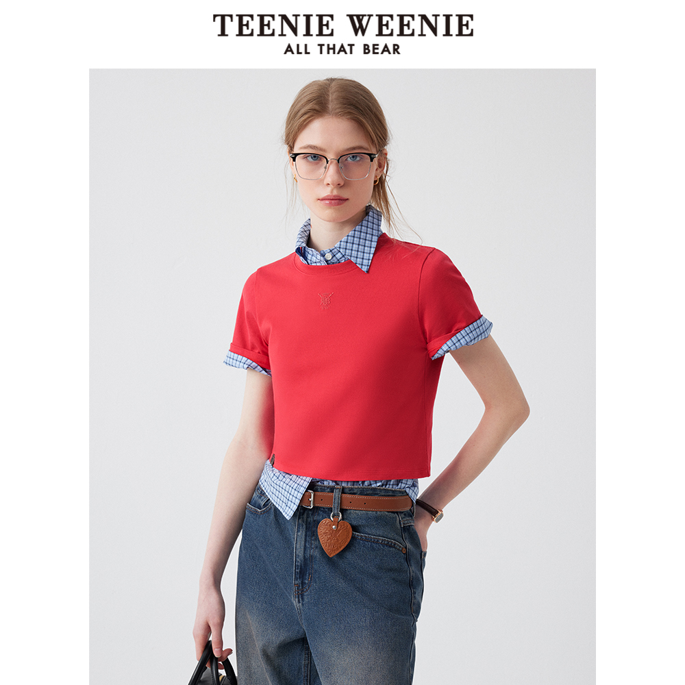 TeenieWeenie小熊女装短袖T恤2025秋季新款简约圆领时尚刺绣上衣