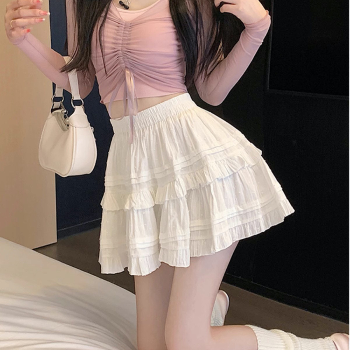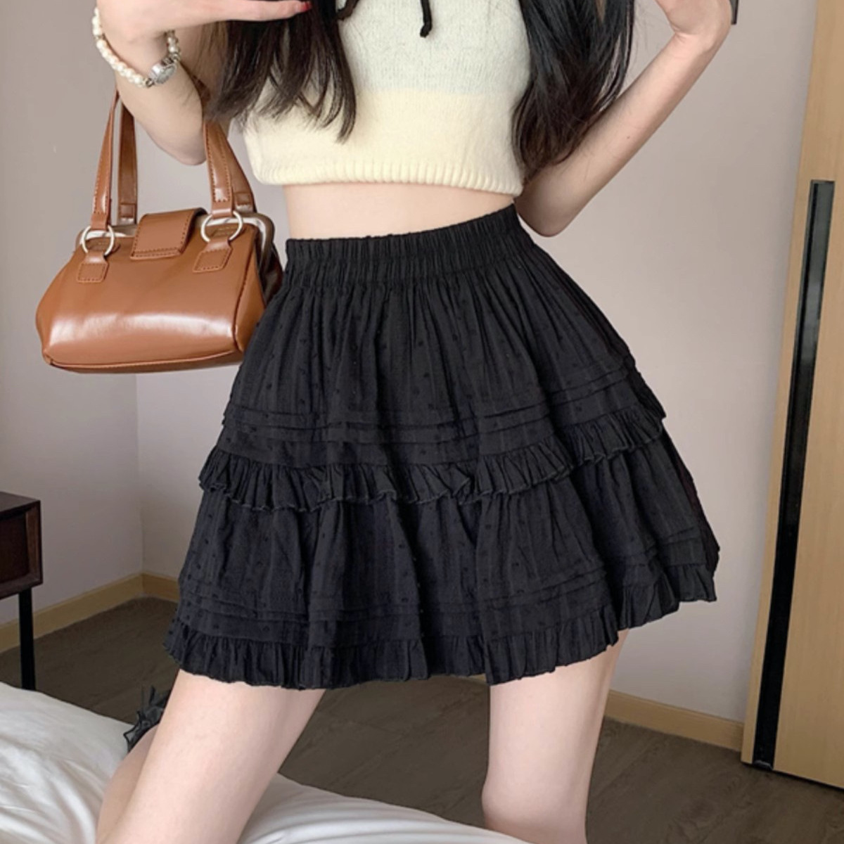 野媛甜美法式蛋糕裙女显瘦松紧腰大码显瘦A字学生短裙半身裙子夏