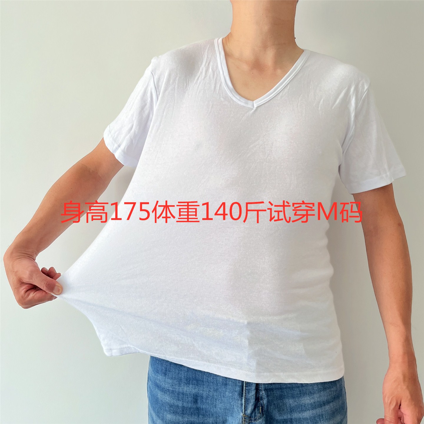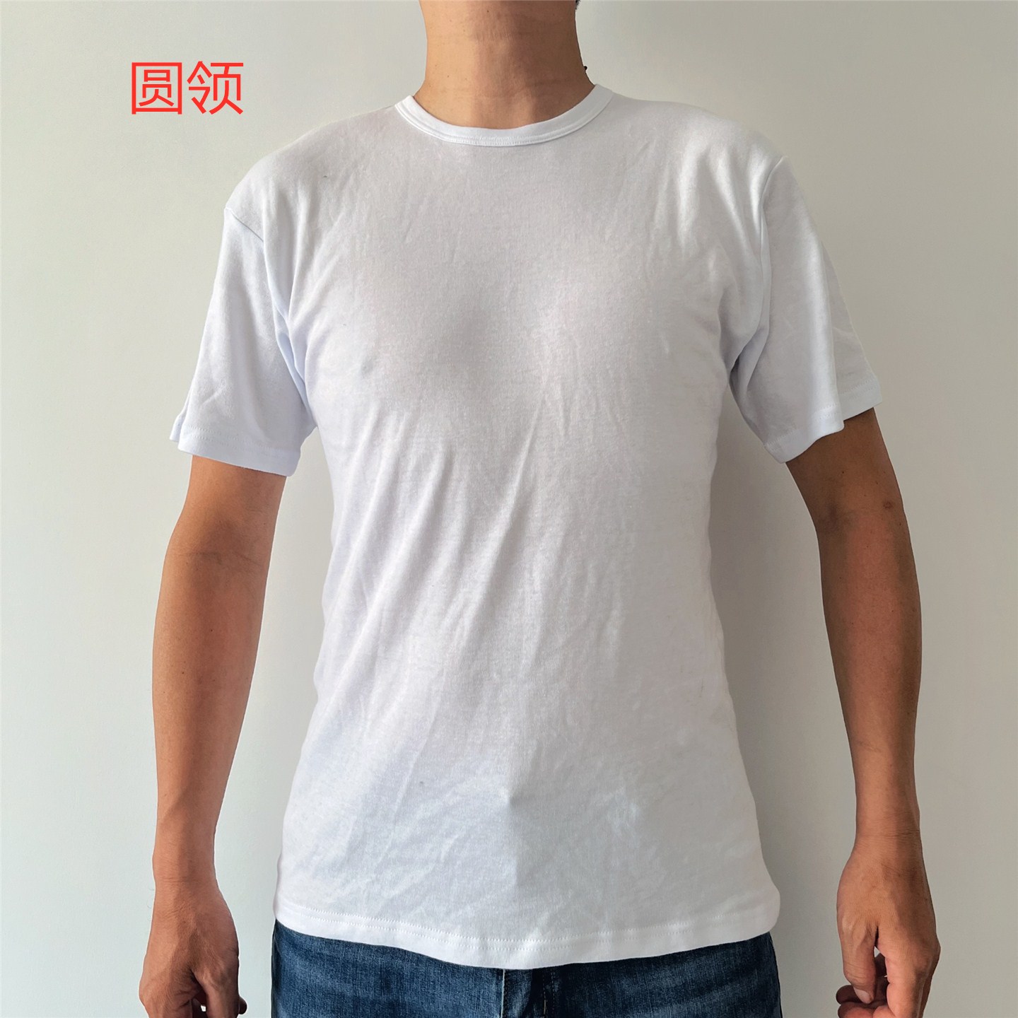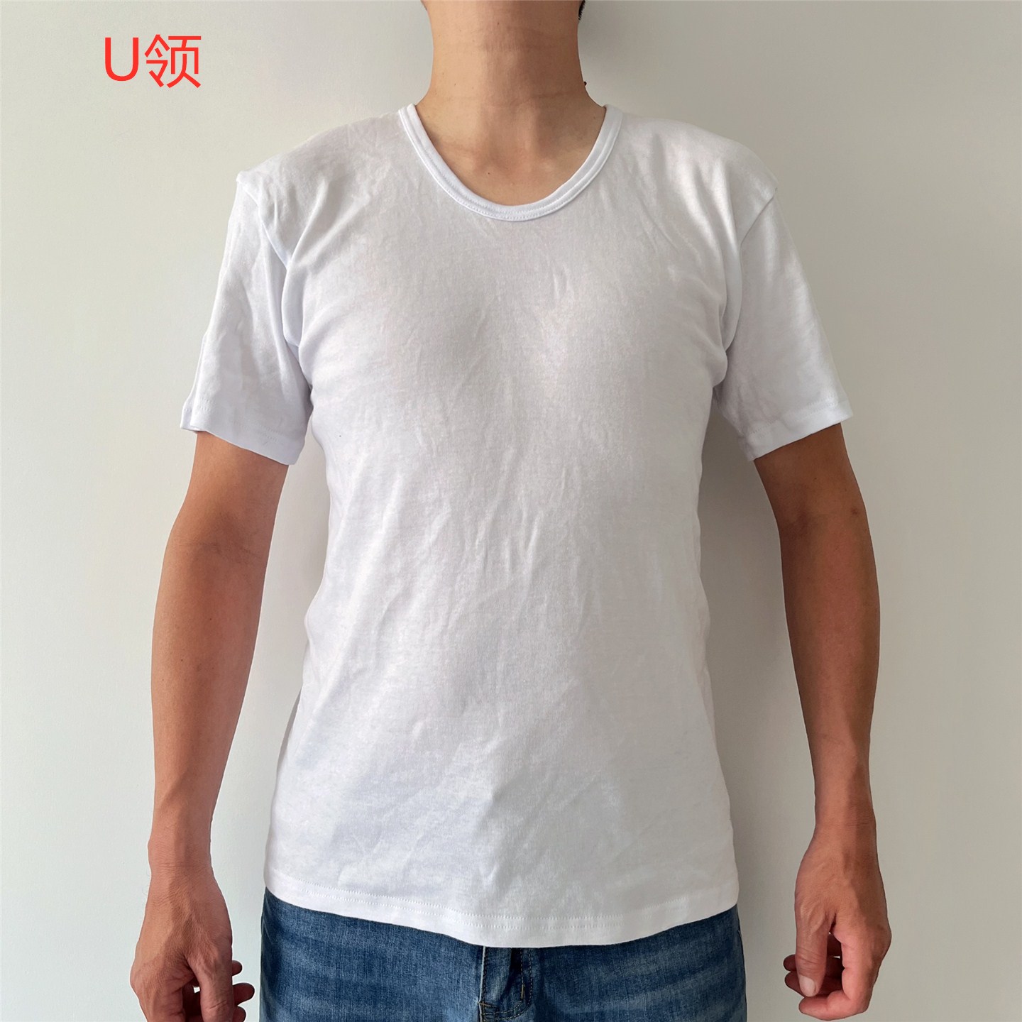 外贸日单男纯棉U领圆领V打底短袖衫贴身白色弹力秋衣内衣内衬半袖