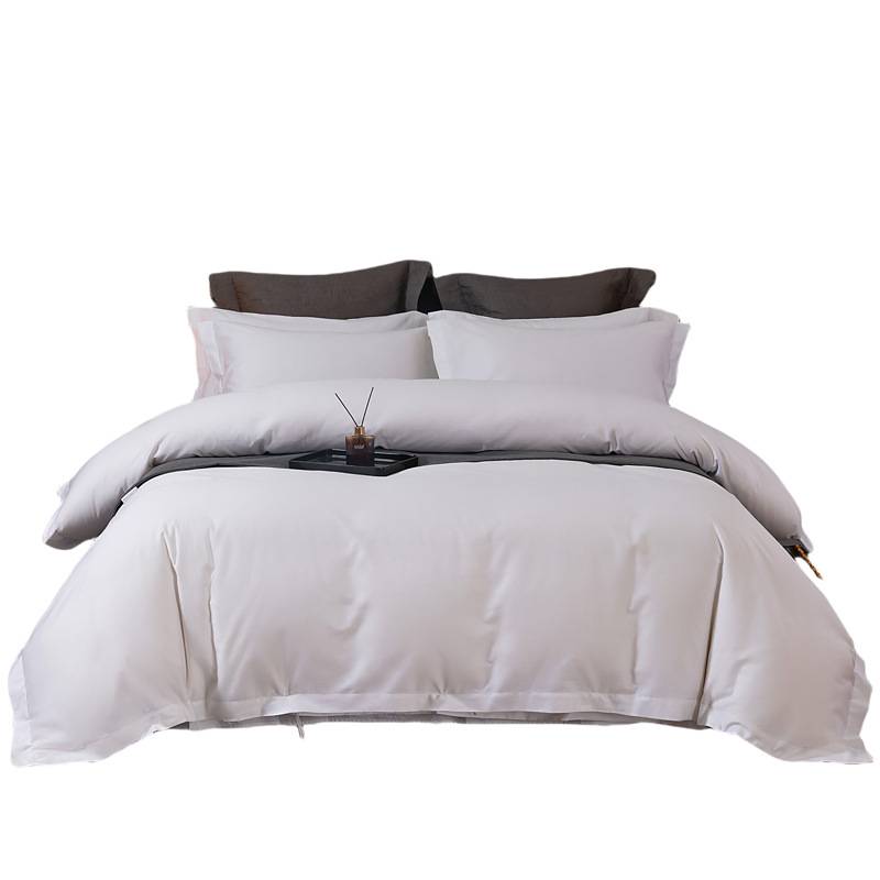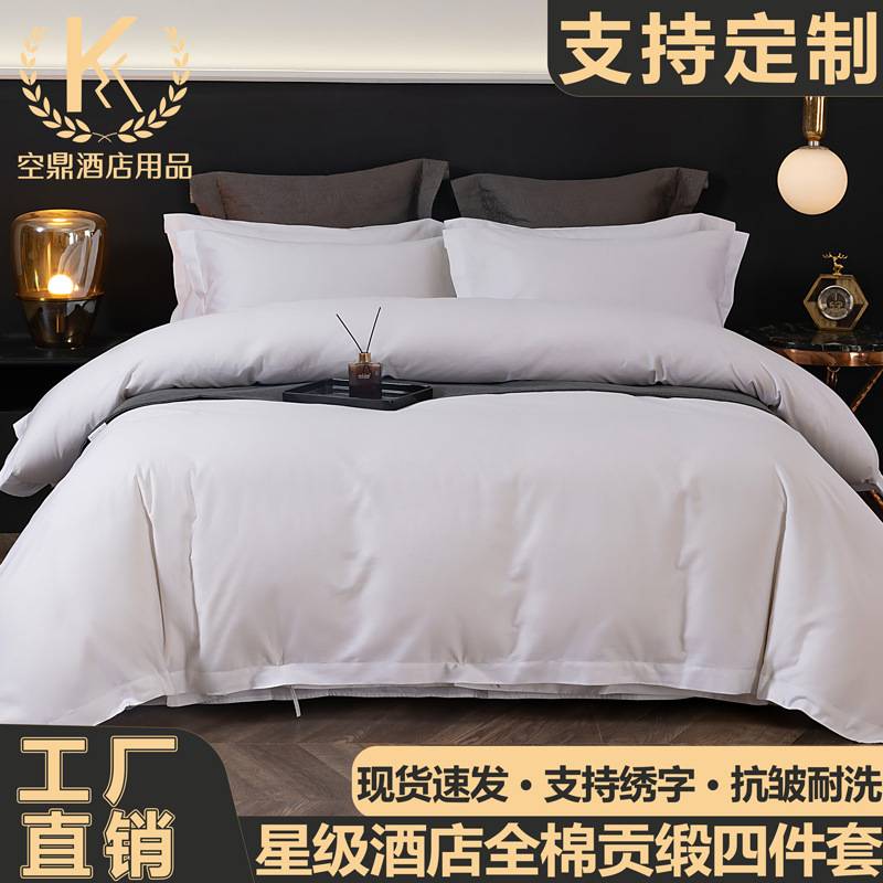酒店床上用品全棉贡缎四件套宾馆专用布草白色纯棉民宿床被套