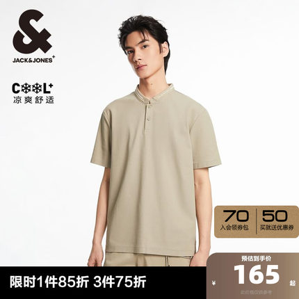 杰克琼斯夏季新款商务休闲简约凉感小立领男士短袖POLO衫男款男装
