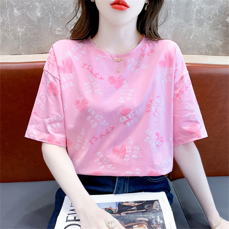 2025夏季新款潮ins短袖T恤上衣女潮流印花百搭青春修身泫雅风小衫