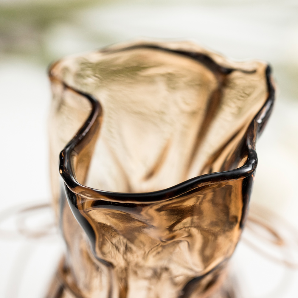 北欧艺术褶皱玻璃花瓶 高级感ins小花瓶桌面装饰摆件客厅插花花器