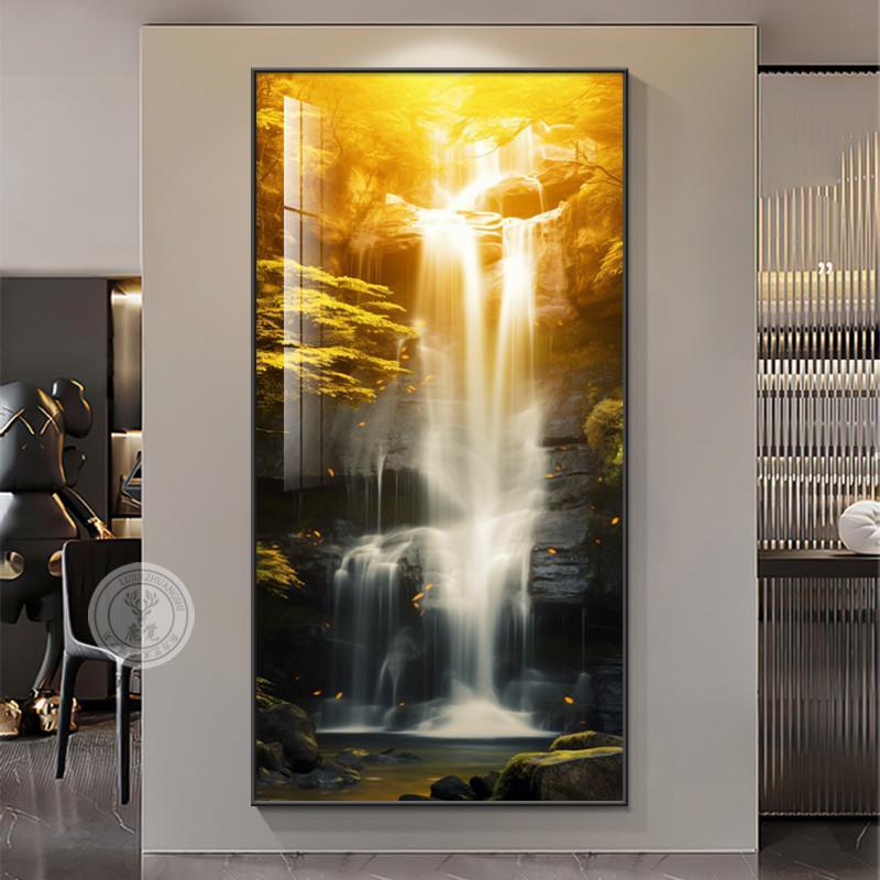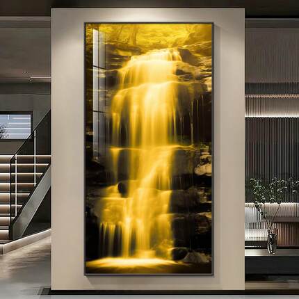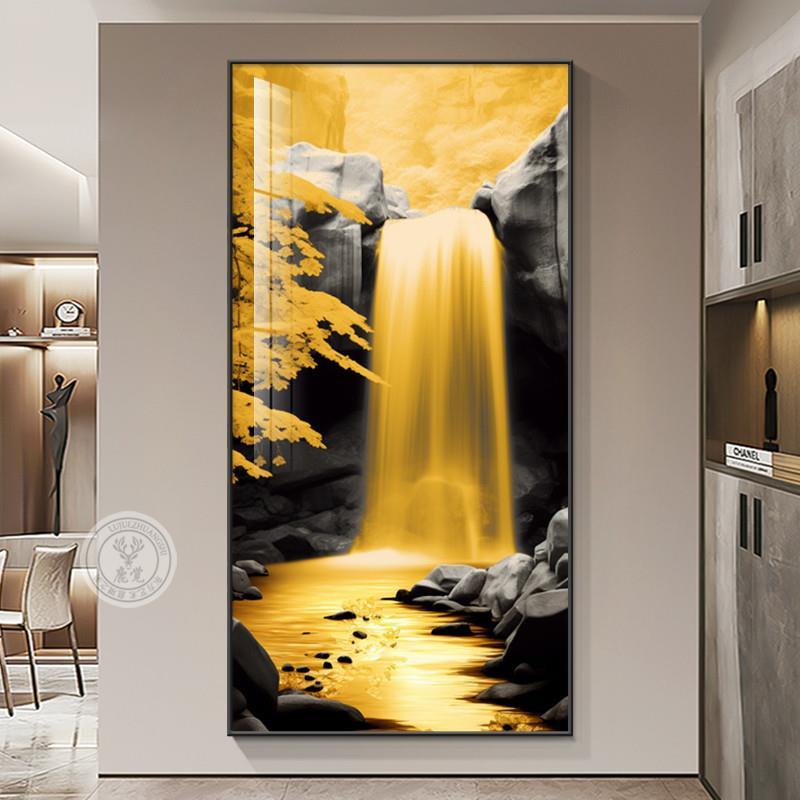 流水生财挂画山水风景画轻奢高级感玄关装饰画进门生财走廊过道画