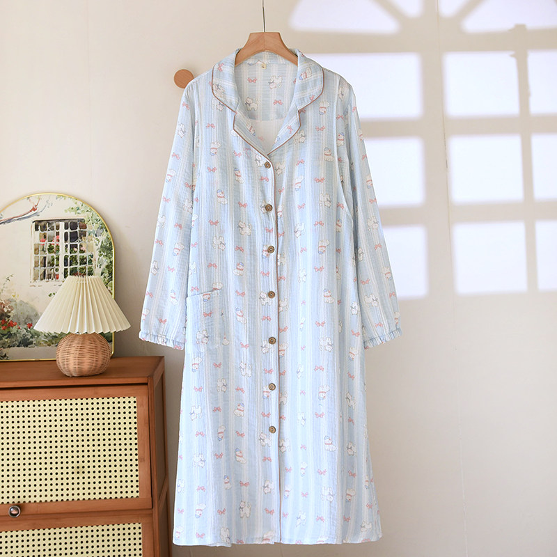 带胸垫纯棉纱布哺乳睡裙孕妇睡衣月子服待产裙春夏季薄款进产房