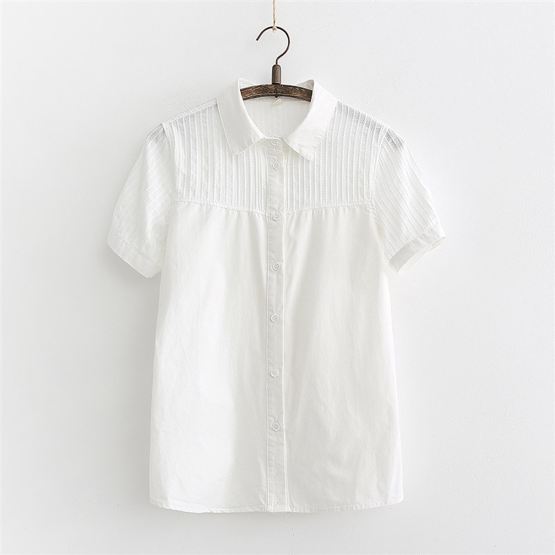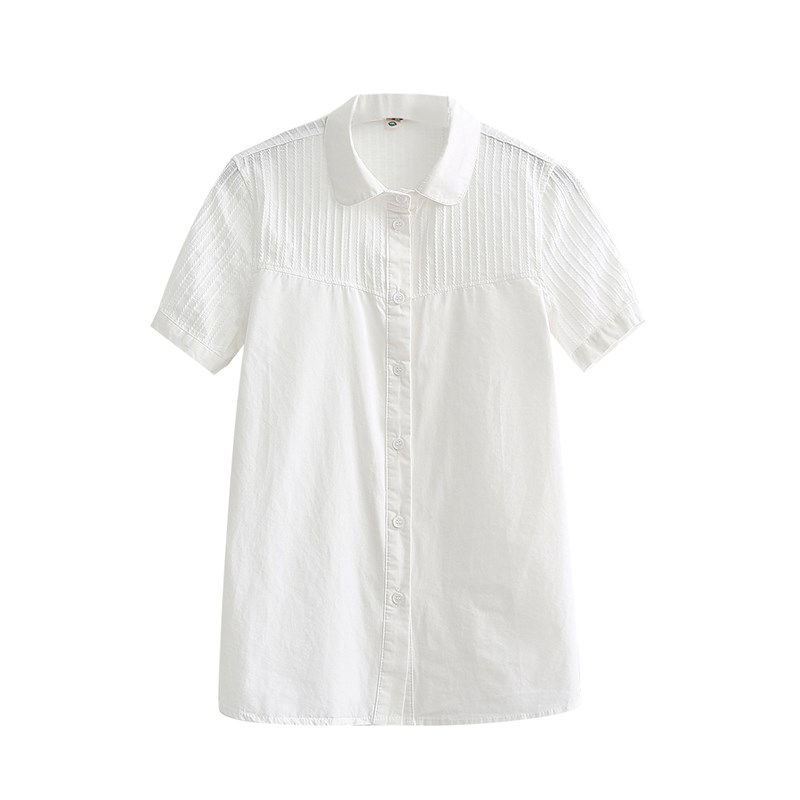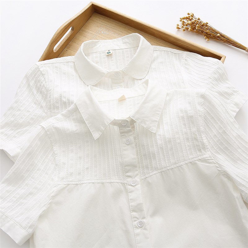 2020夏季新款娃娃领纯棉白色薄款短袖衬衫女学生宽松百搭职业衬衣