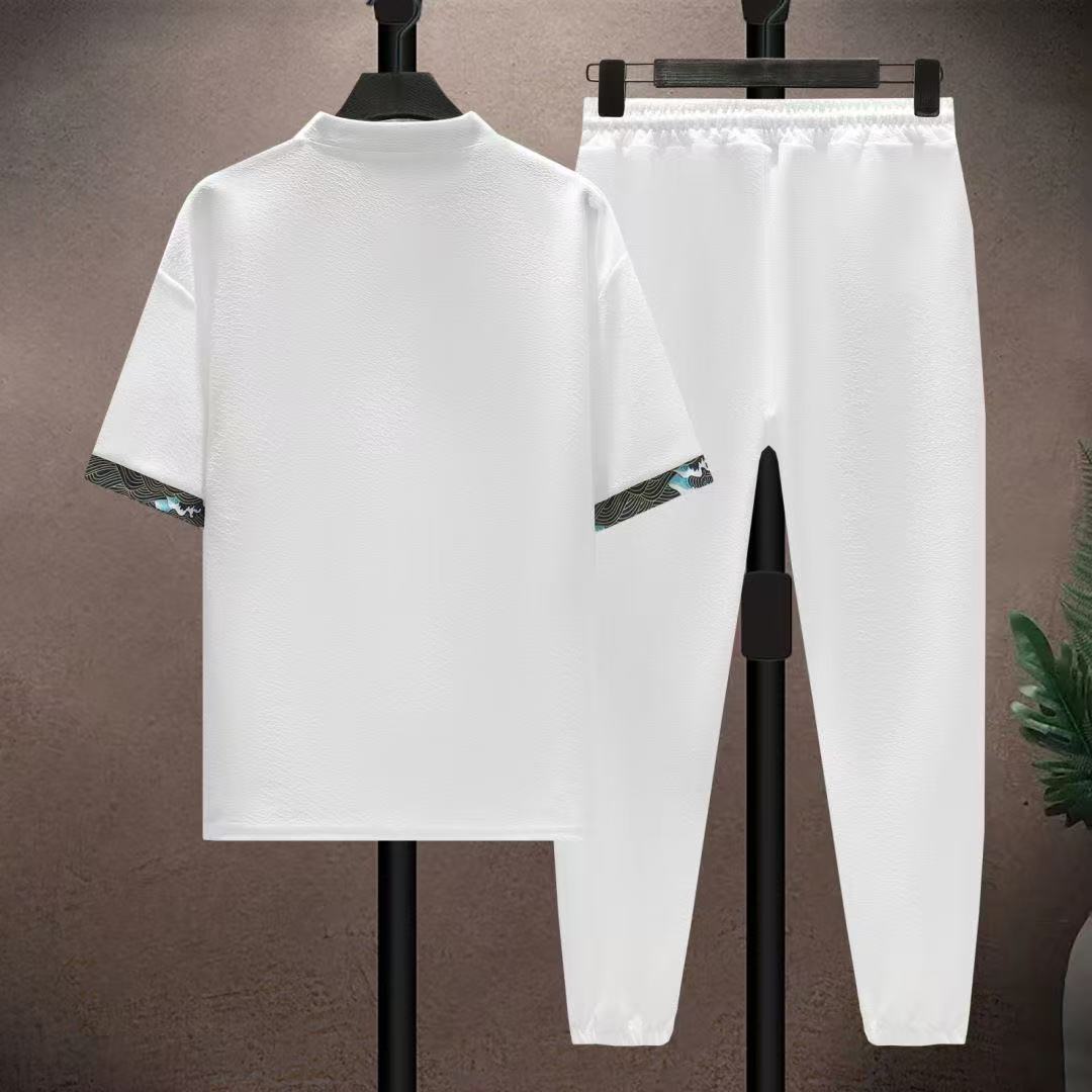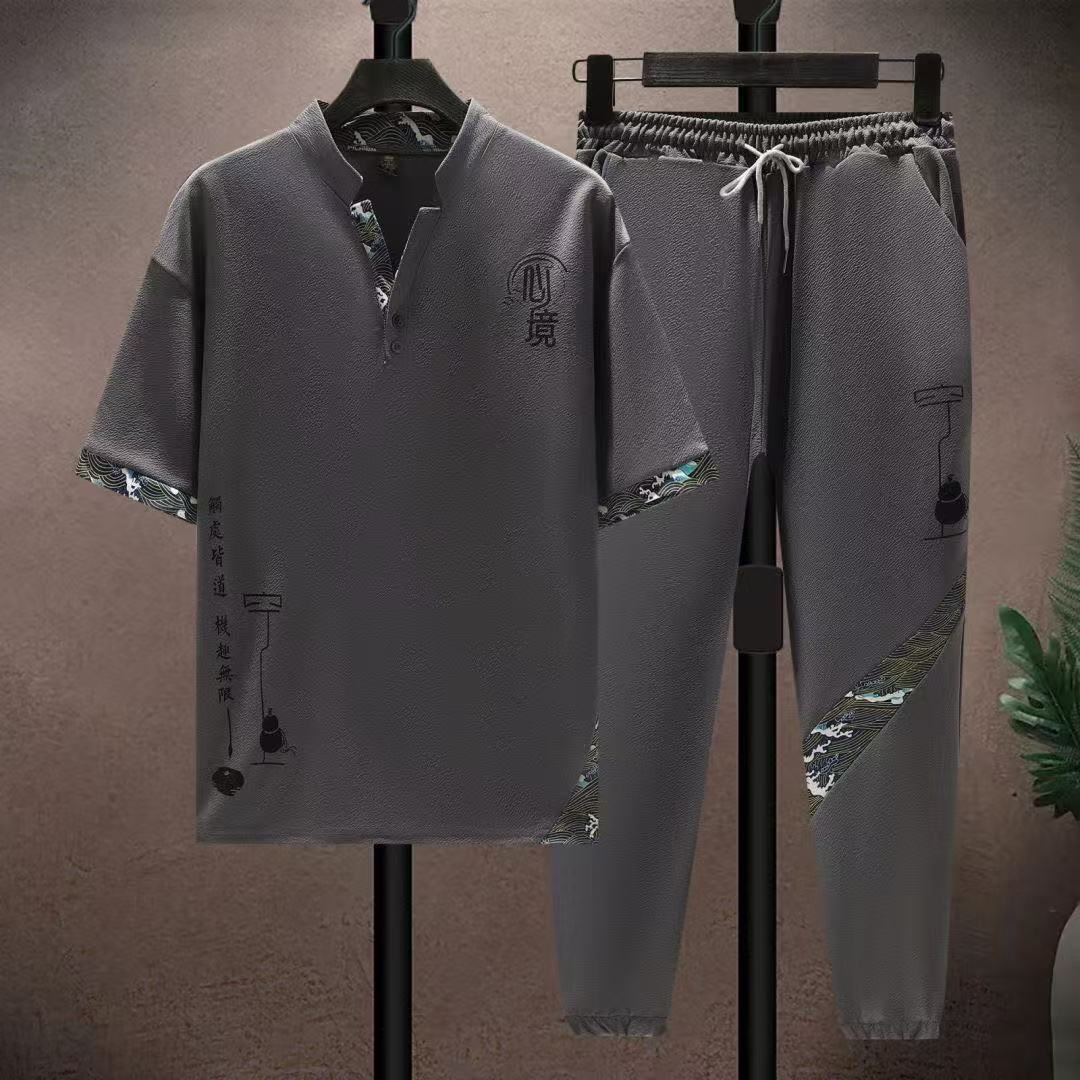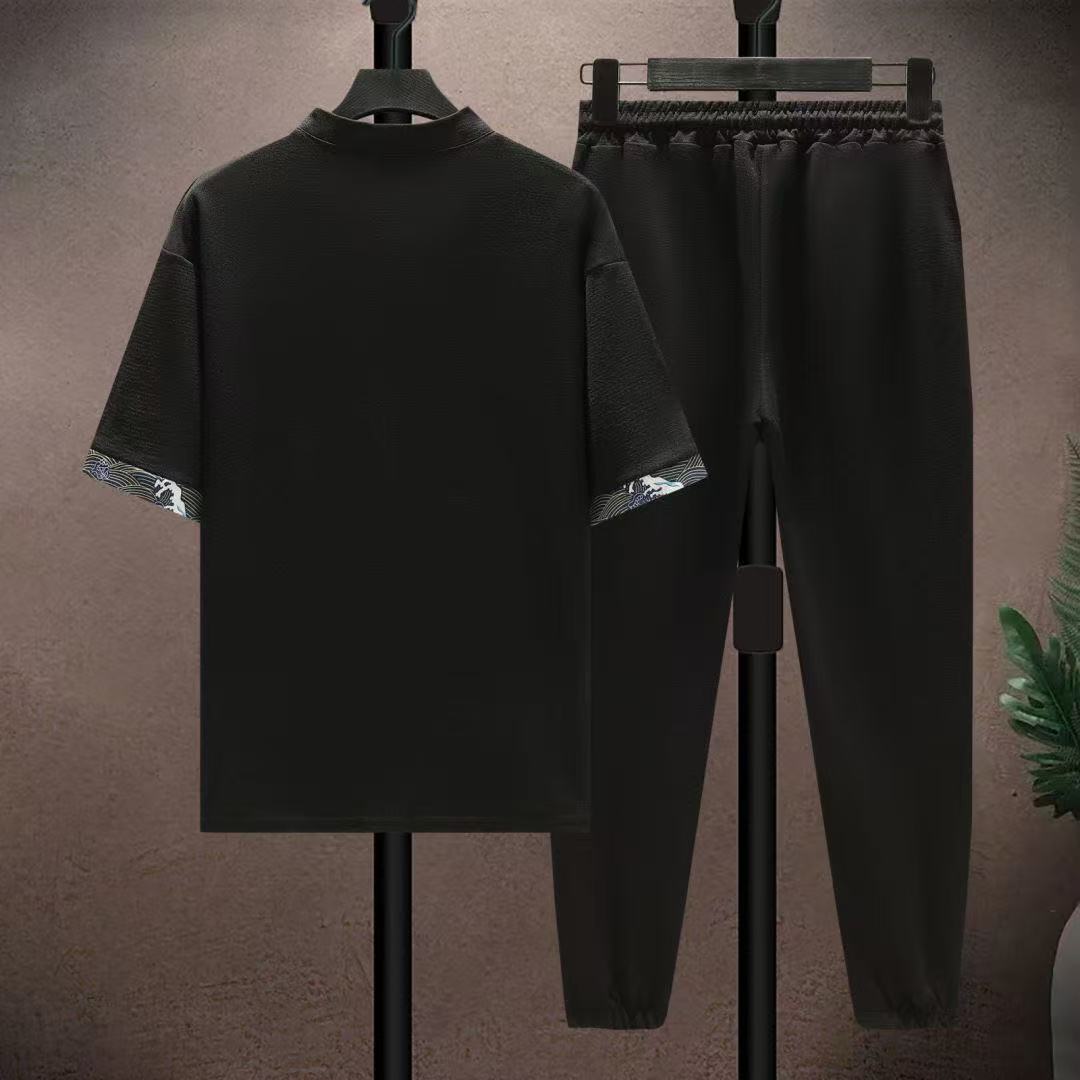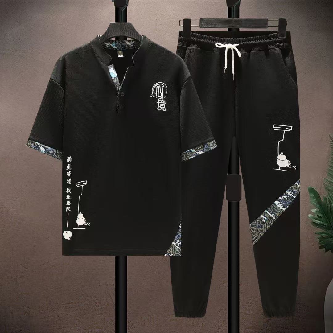 男装中国复古风宽松短袖长裤新中式国潮运动休闲男士两件套装男