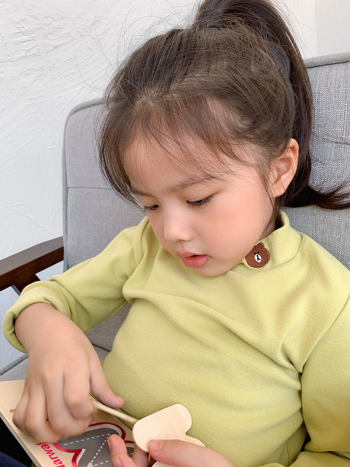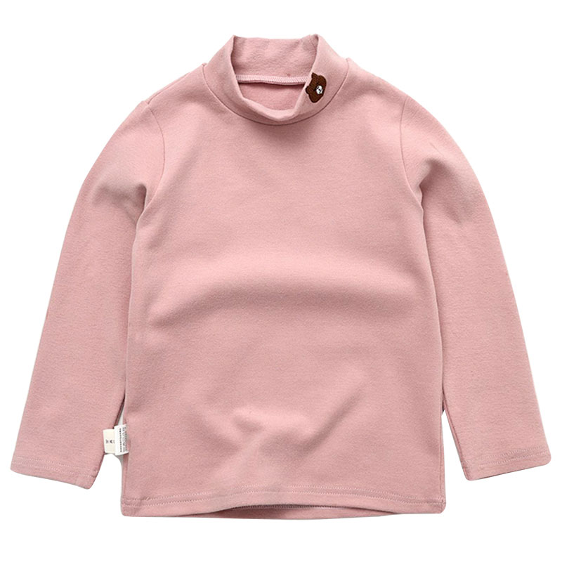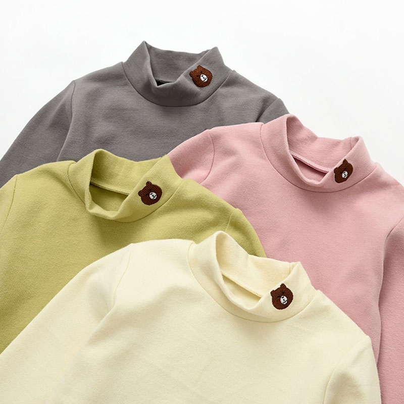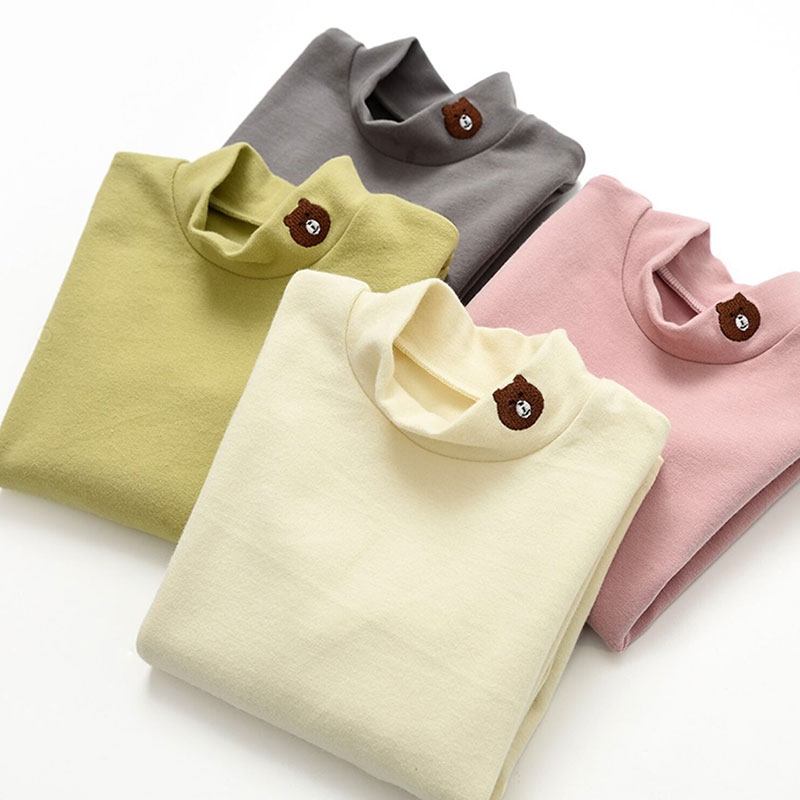 儿童纯棉磨毛T恤 男童女童半高领刺绣小熊打底衫 中小童 春秋装