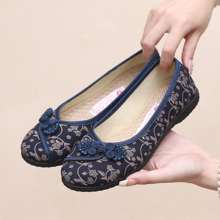老北京布鞋春秋女单鞋中老年软底防滑妈妈鞋民族风绣花平底奶奶鞋