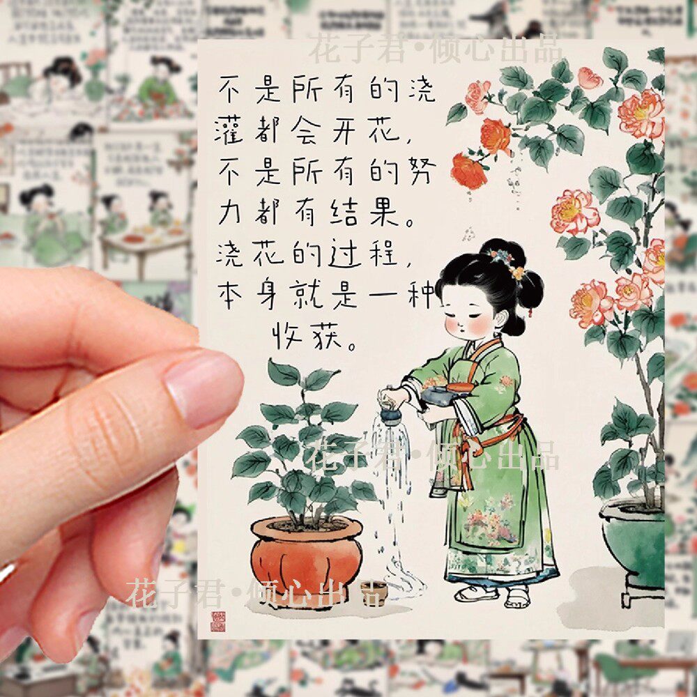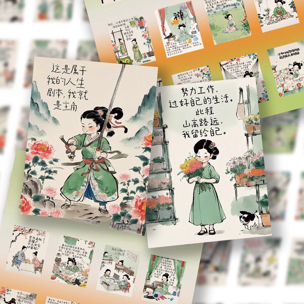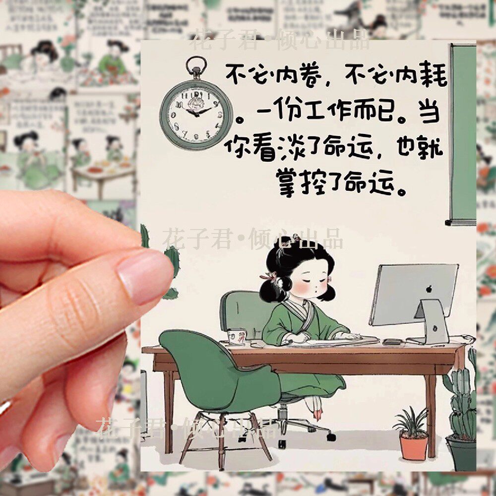 96张国风鸡汤短句贴纸ins风古风小场景励志治愈文字贴画diy桌面