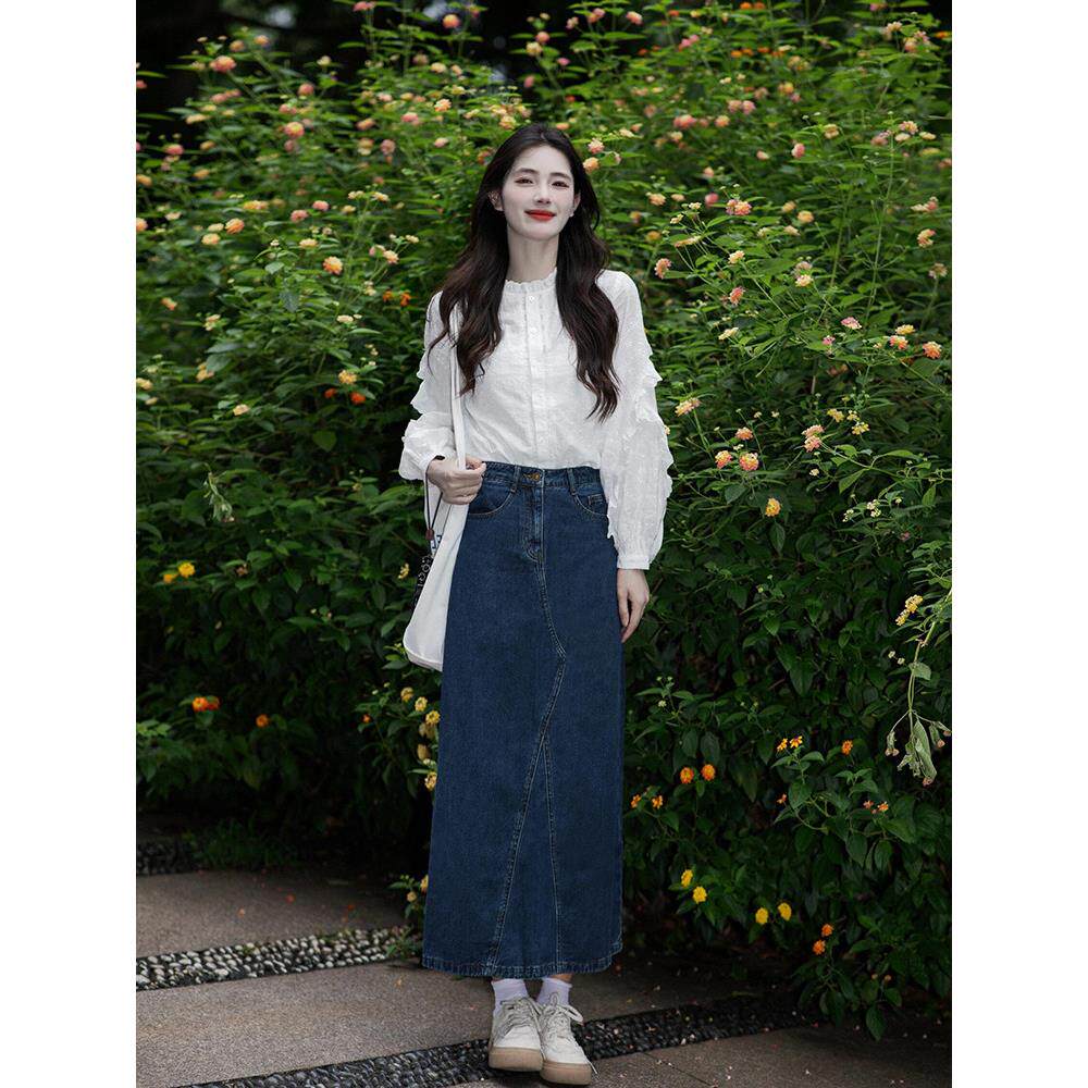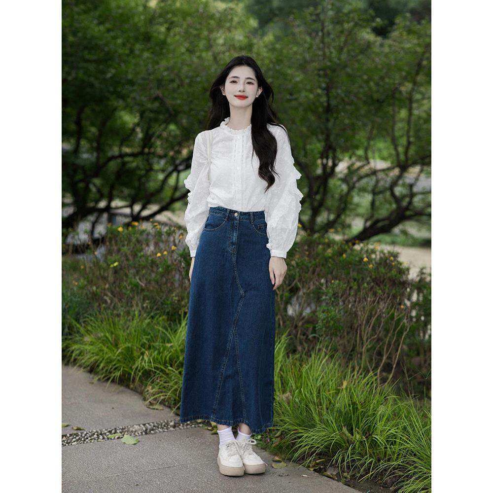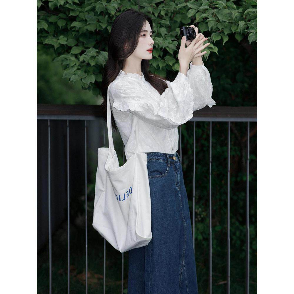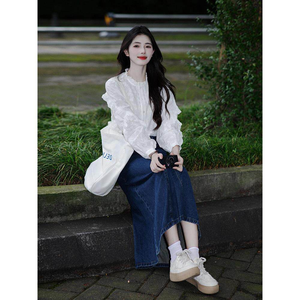 法式白色荷叶边长袖衬衫女早春2026新款高级感泡泡袖蕾丝刺绣上衣