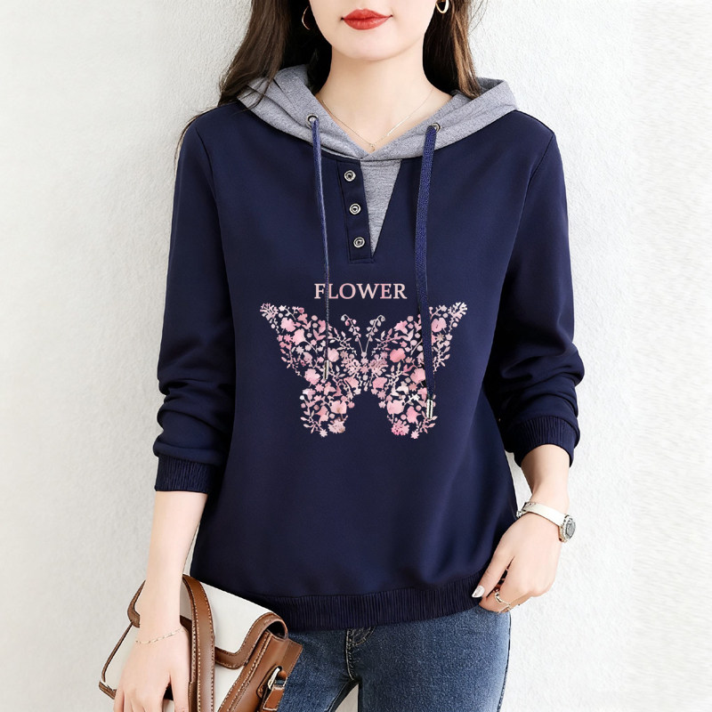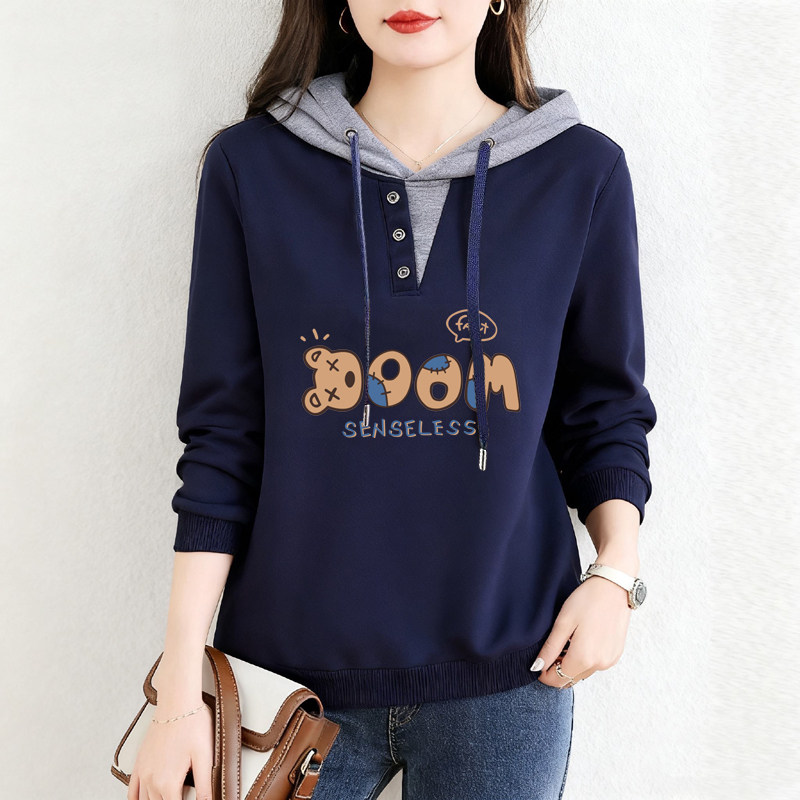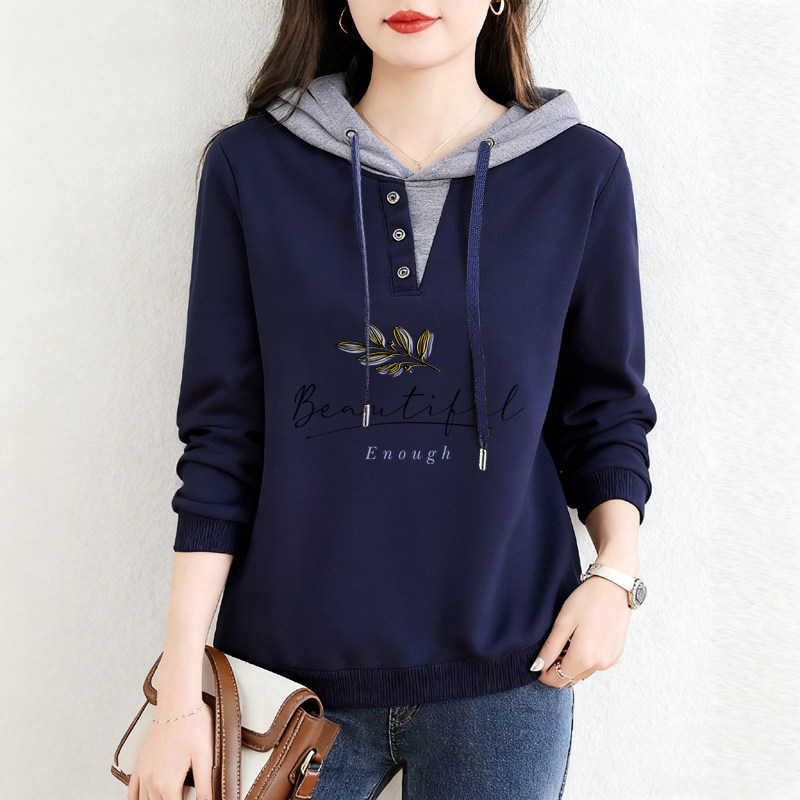 外贸出口清仓100%纯棉长袖气质连帽t恤女秋大码休闲打底衫上衣潮