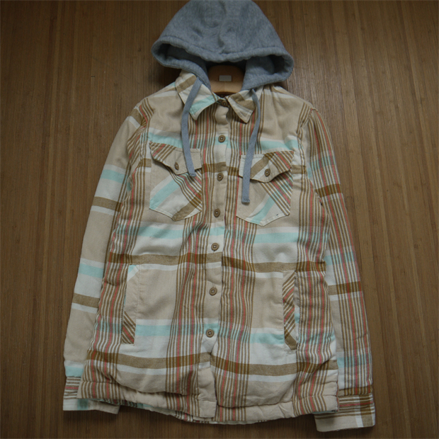 外贸单秋冬女款加绒连帽卫衣纯棉长袖格子假两件保暖休闲服外套