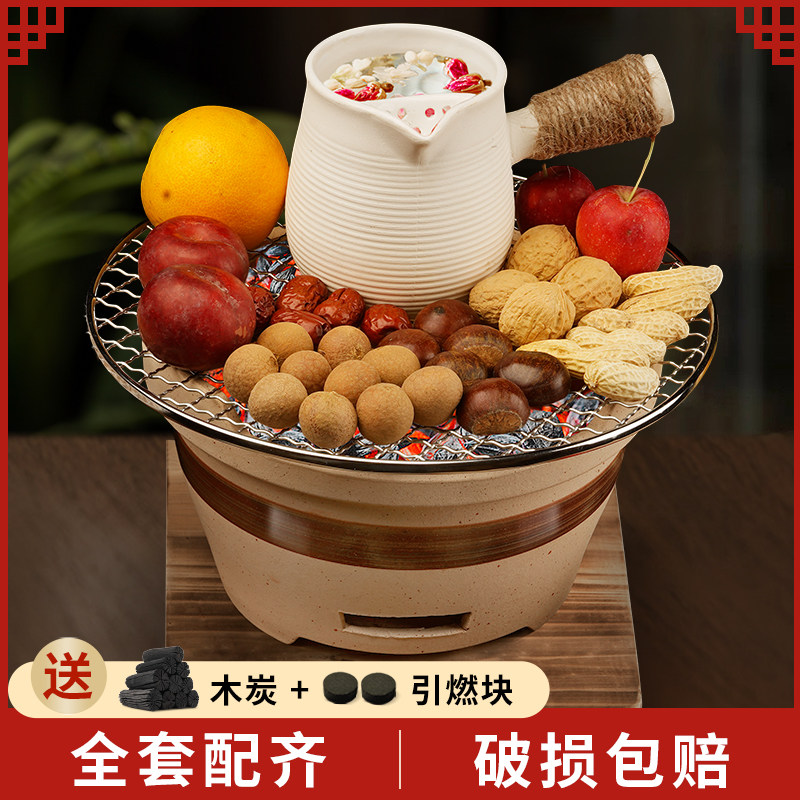 围炉煮茶烤火炉套装器具全套冬天家用室内围炉煮茶碳陶泥炭火炉子