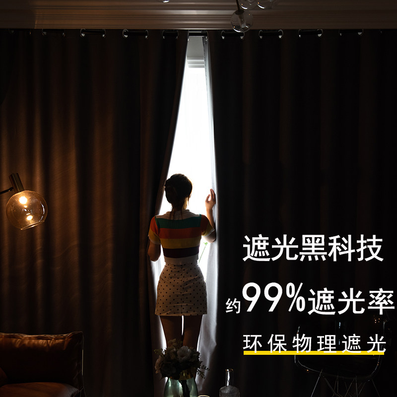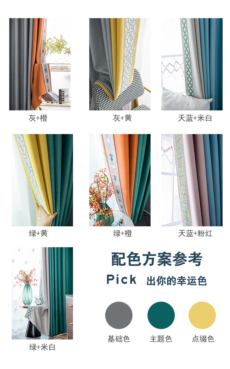 加高超长全遮光窗帘杆一整套自建房别墅棉麻成品布料客厅卧室拼色