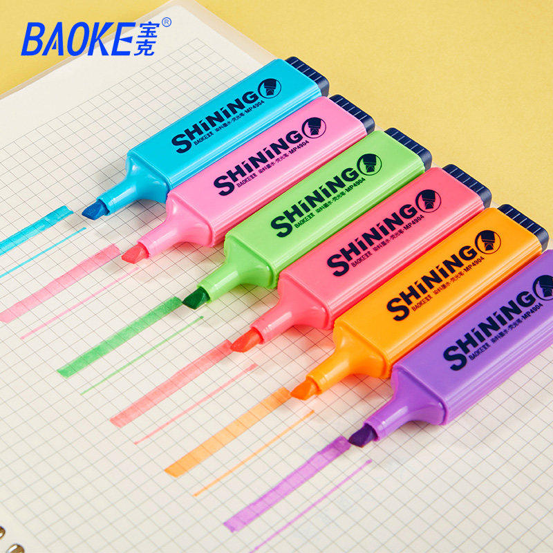 宝克MP4904荧光笔记号笔学生用斜头彩色笔办公学习用品划重点七色