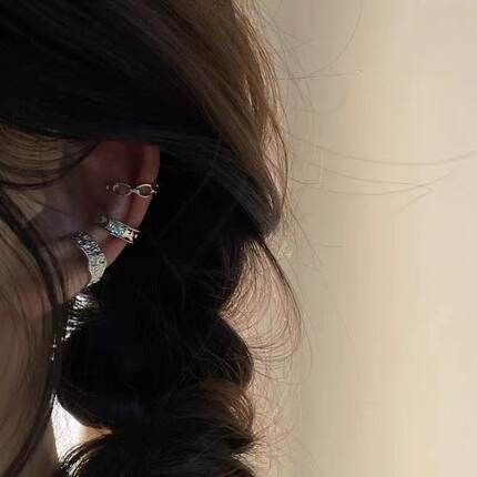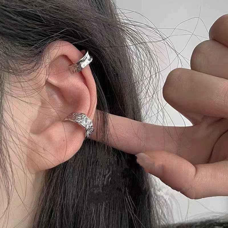 嘻哈耳骨夹冷淡风男朋克熔岩凹凸质感锁链不规则边金属耳饰女小众
