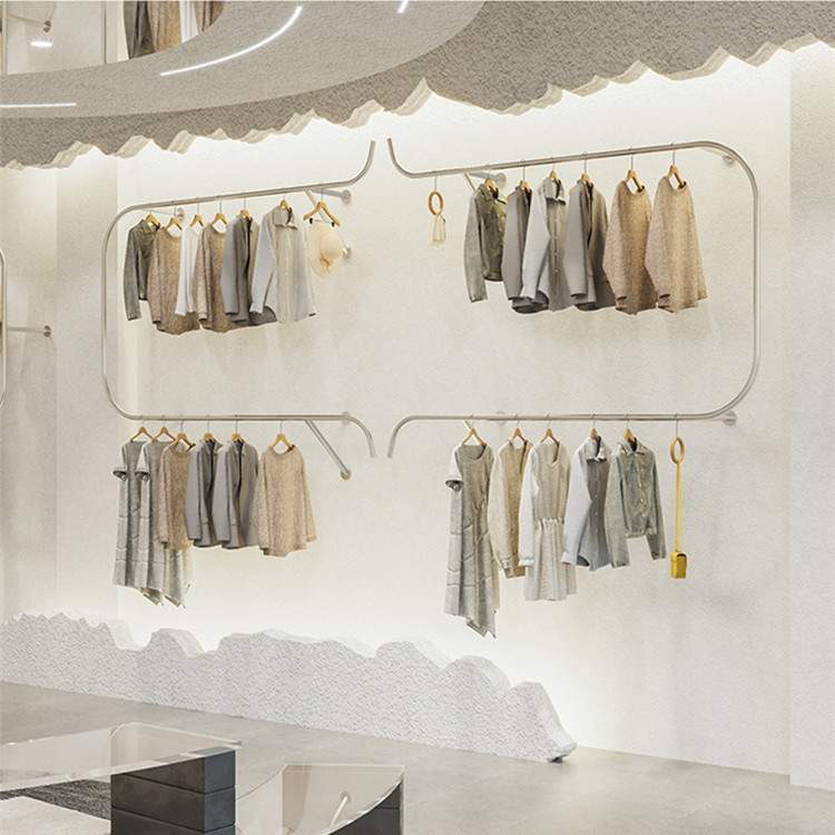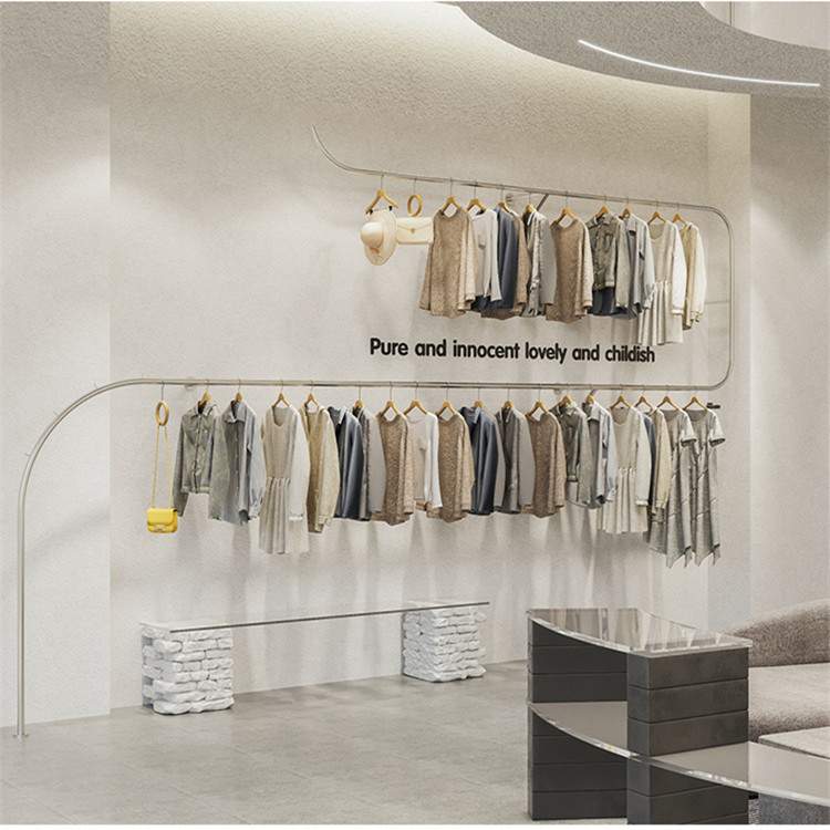 服装店展示架双层衣架女装店落地上墙架组合式挂衣架不锈钢陈列架