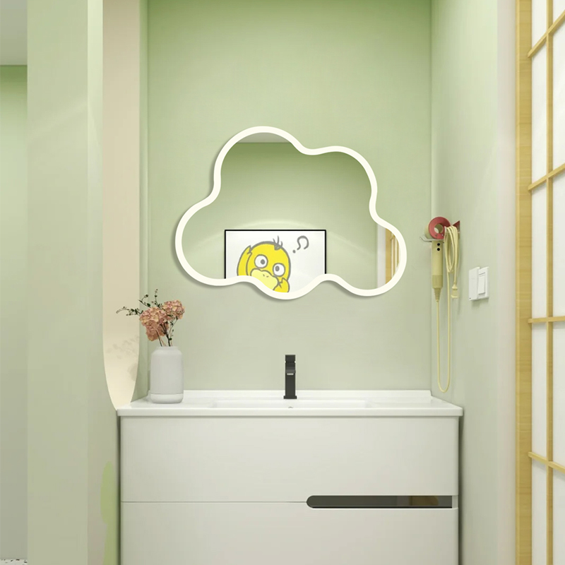 网红ins异形壁挂云朵化妆镜简约智能现代LED卫浴洗漱台镜子装饰镜