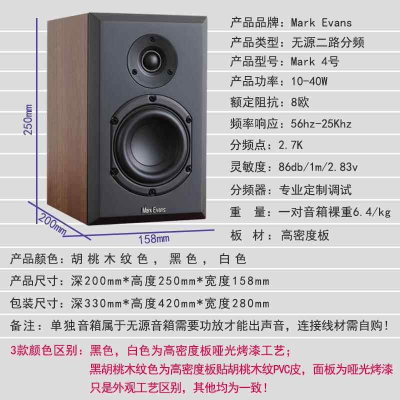 马克埃文斯4号 4寸发烧电脑桌面家用无源hifi书架高保真白色音箱