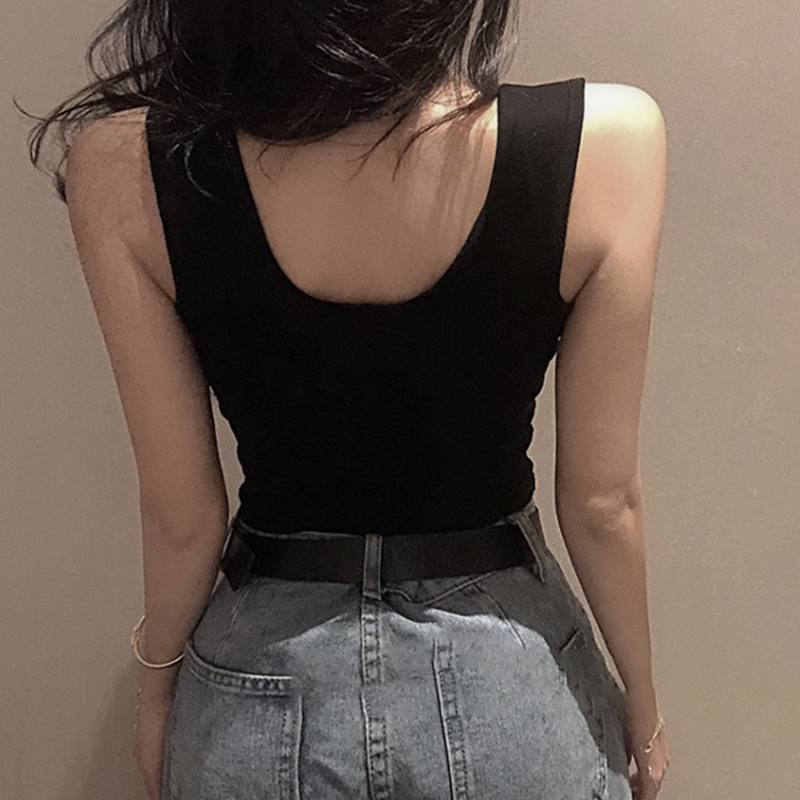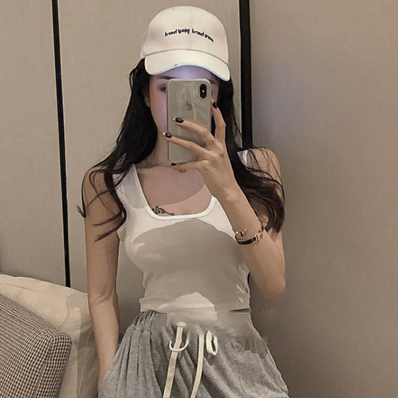 背心吊带女春夏宽肩带短款内搭大码性感大领口法式方领无袖打底衫