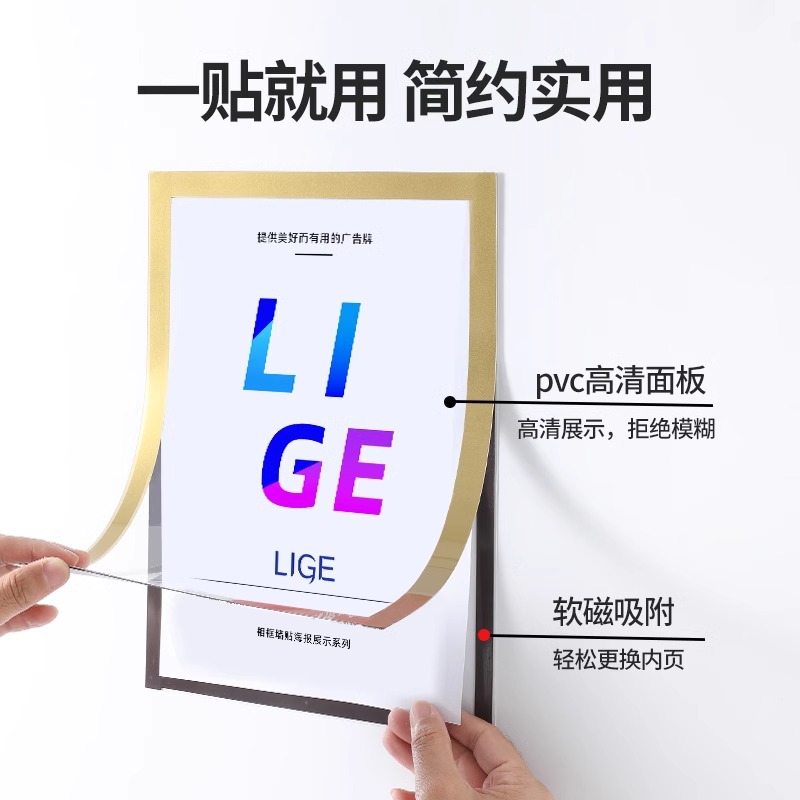 【新款】a4磁性展示贴免钉软磁贴a3文件框磁吸磁铁相框文化墙磁海报营业执照食品安全证奖状展示牌透明保护套