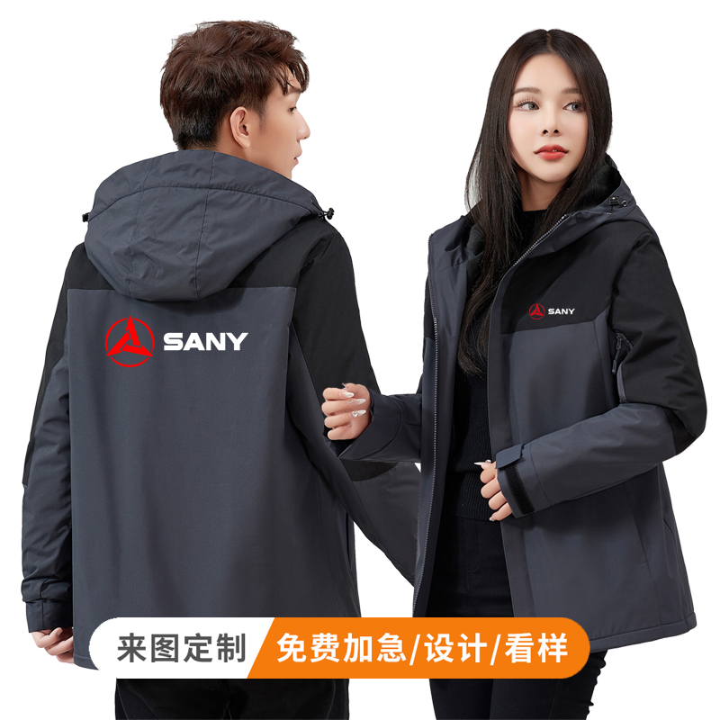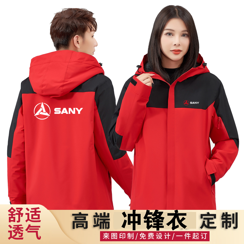 秋冬三一重工作服外套定制建材机械防风加绒冲锋衣长袖装订做印字