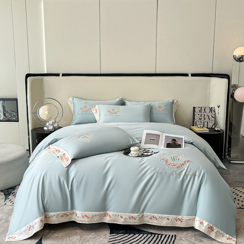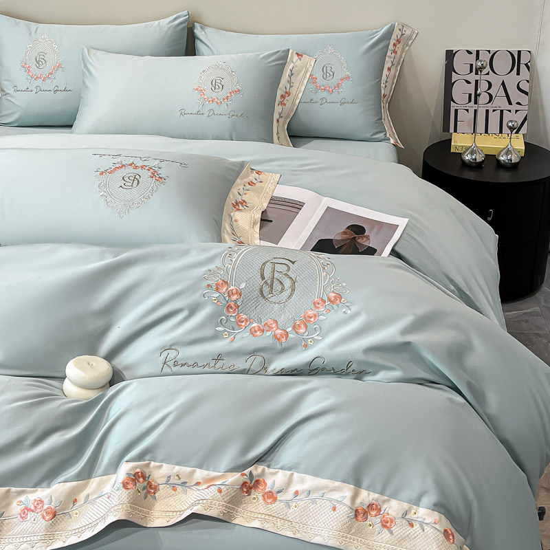 水星家纺A类纯棉四件套100支四季全棉床单被套高端刺绣床上用品