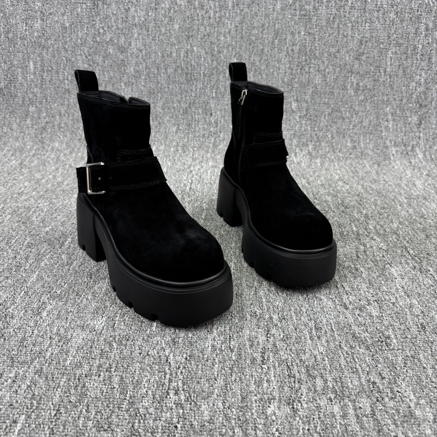 欧洲站欧货真皮女靴2025秋季新款高跟厚底松糕底马丁靴皮带扣短靴