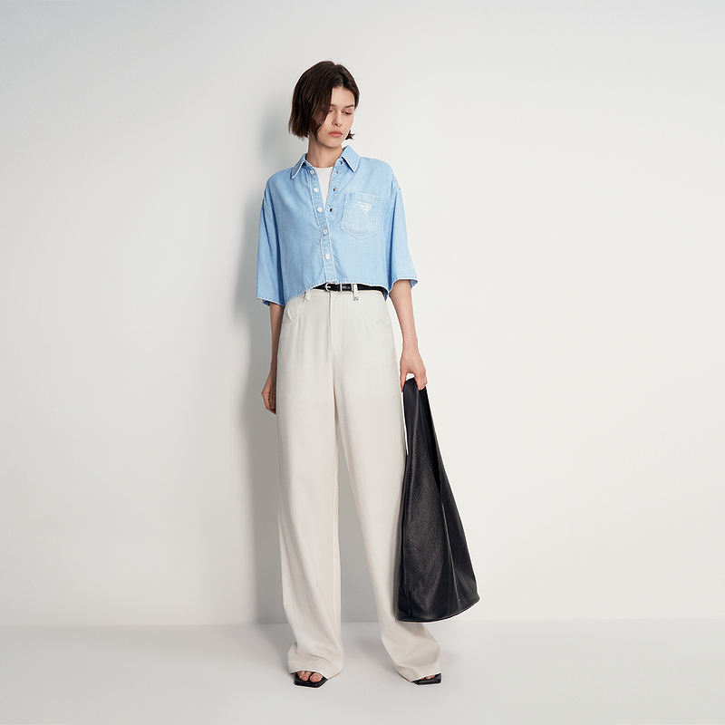 100%天丝牛仔短袖衬衫女 ochirly欧时力2024新款夏装短款透气