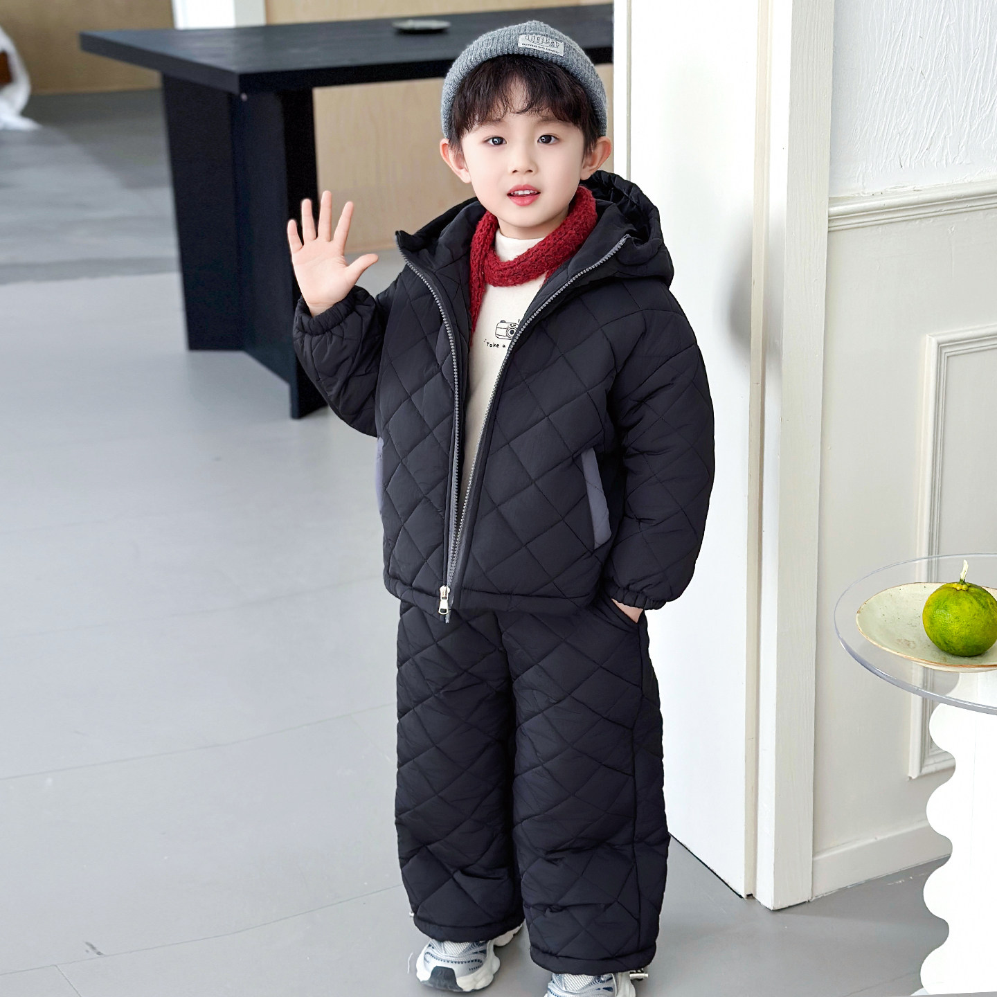 男童冬装棉裤套装2025新款儿童加厚衣服冬季男宝保暖外套两件套潮