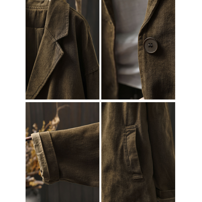 秋季新款宽松西装领外套女文艺显瘦中长款开衫长袖风衣外穿女上衣