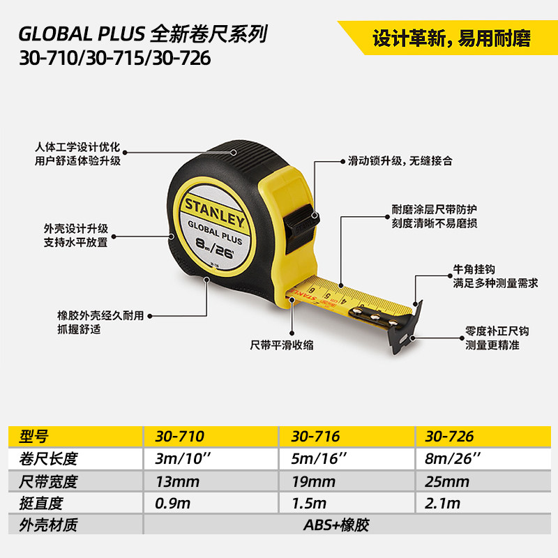 史丹利公英制卷尺3/5/8米加厚钢卷尺防摔高精度木工圈尺家用米尺