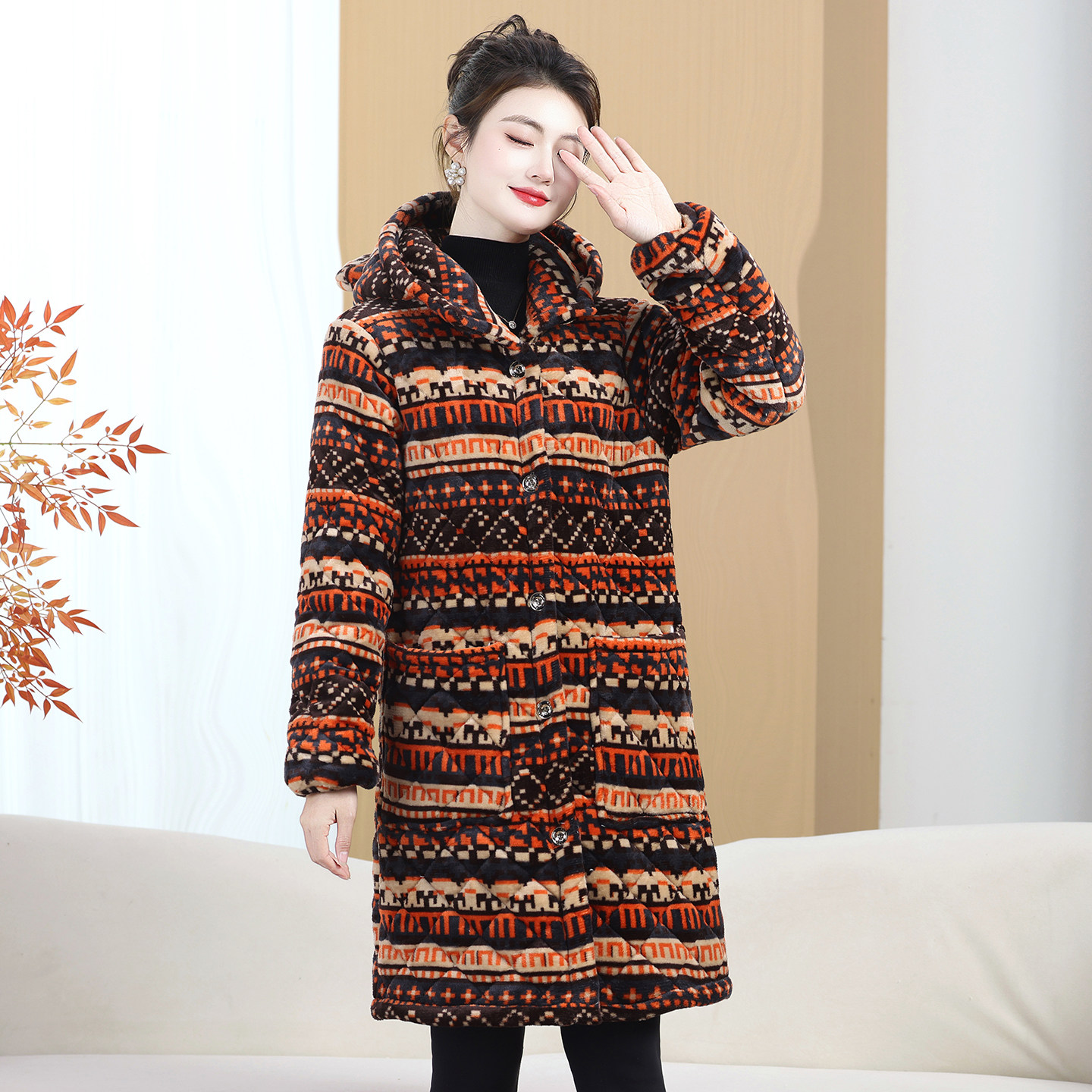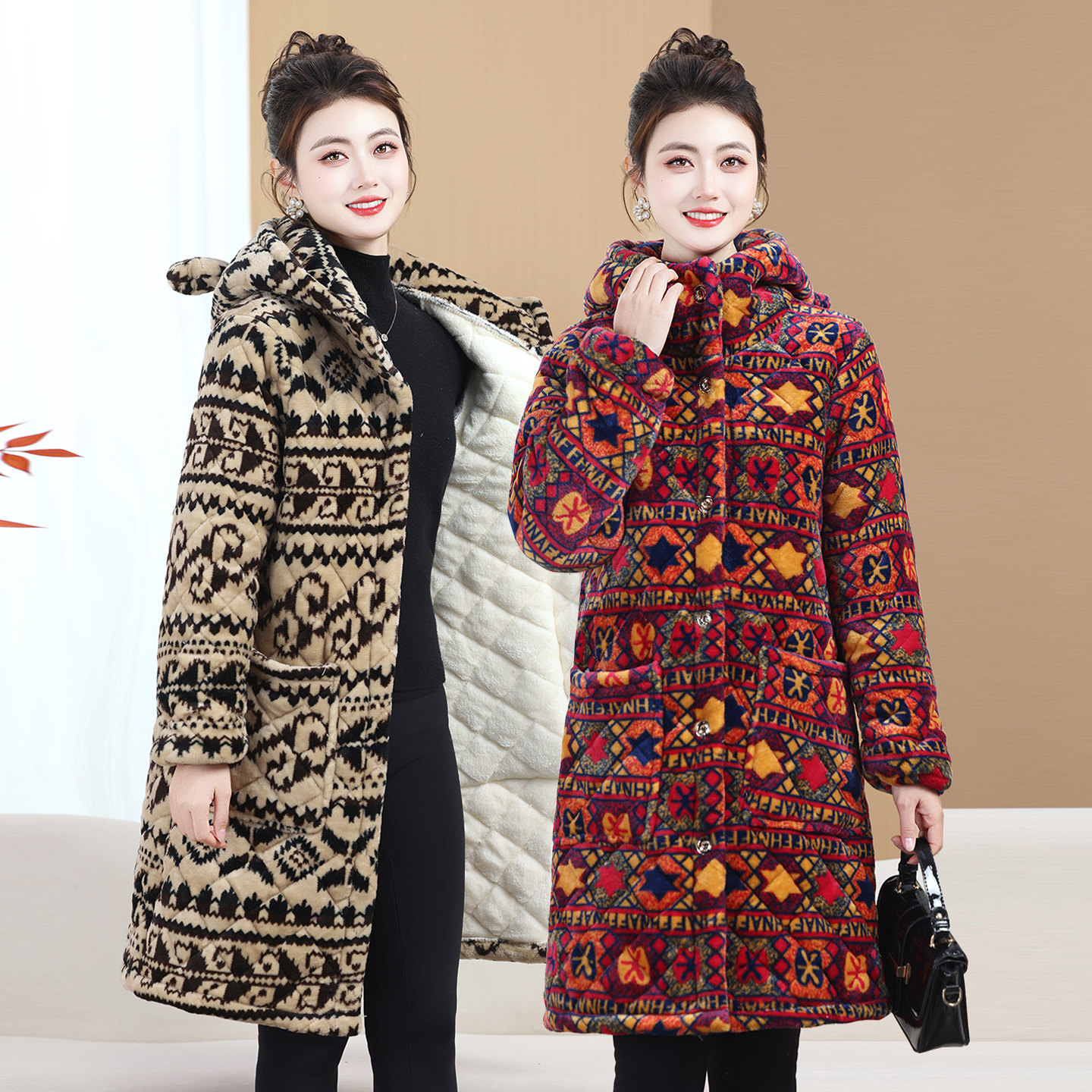 25加厚加绒妈妈装长款棉服秋冬