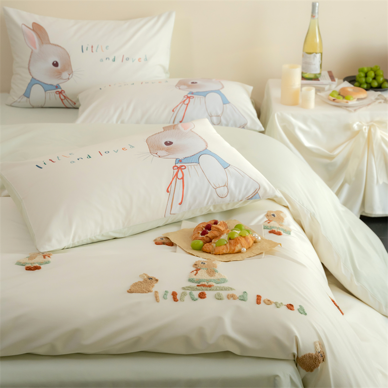 床上用品全棉卡通床品毛巾绣可爱儿童被套床单套件四件套