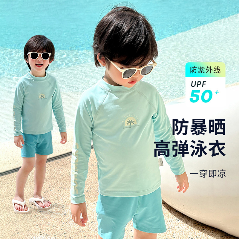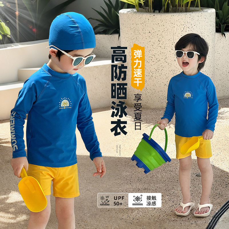 儿童泳衣男童游泳衣分体泳装2025新款小男孩泳裤套装速干长袖防晒