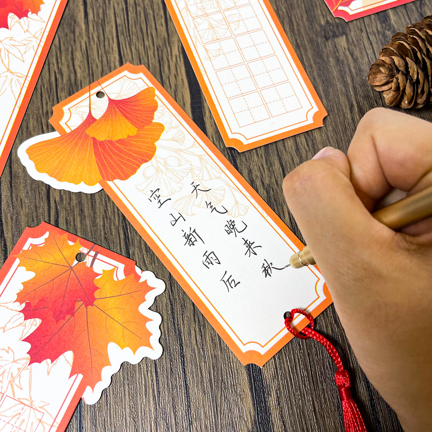 一叶知秋文创书签枫叶银杏形状秋季主题空白田字格卡片信笺小学生手工diy写硬笔铅笔练字书法作品展示挂卡纸