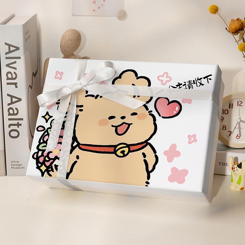 线条小狗礼物盒送男女朋友生日礼盒三八节惊喜创意礼品盒包装空盒