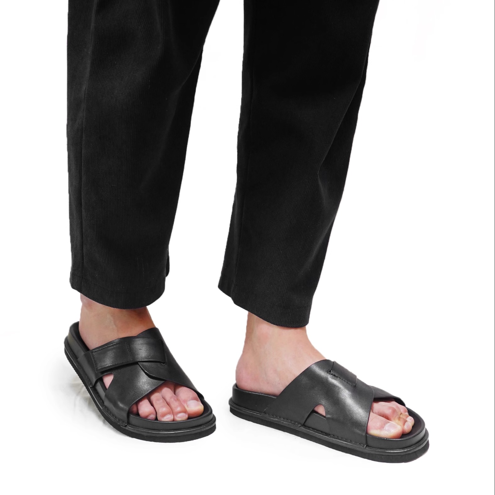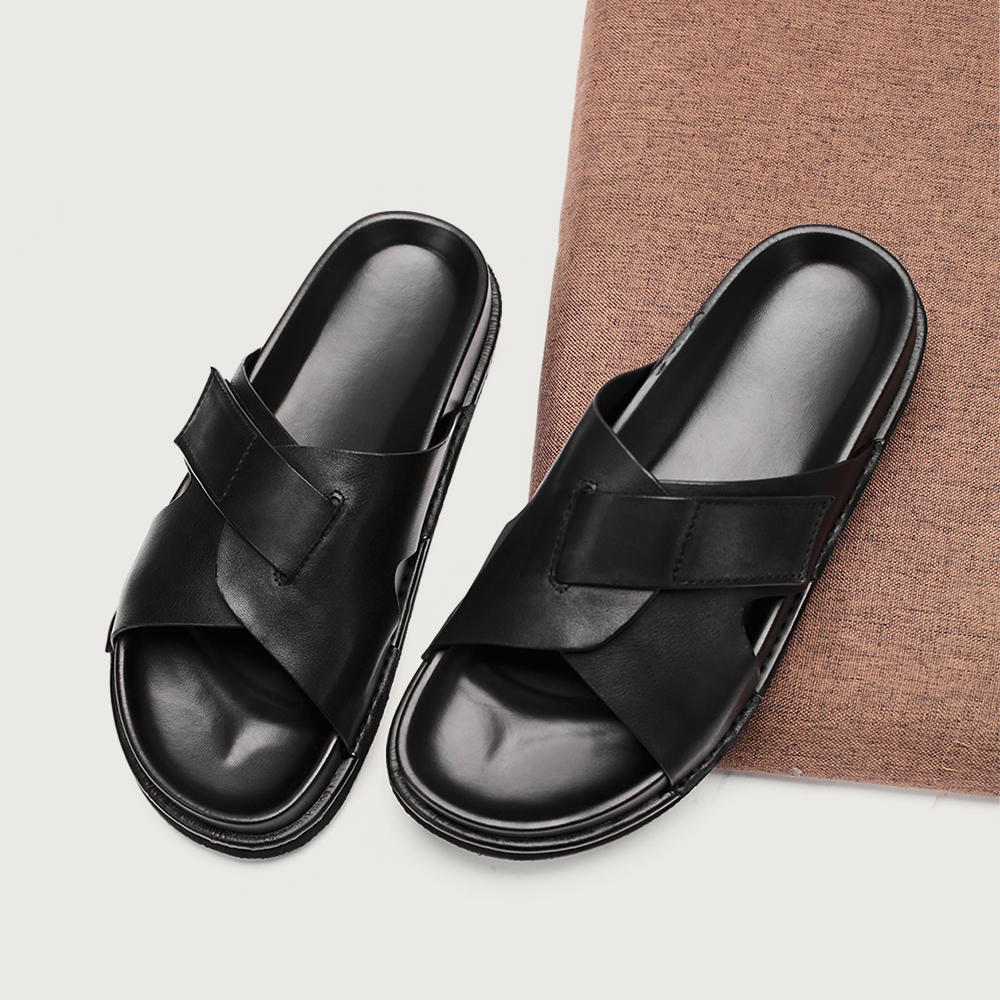 拖鞋男士夏季牛皮透气时尚凉拖鞋子增高防滑沙滩鞋室外舒适一字拖