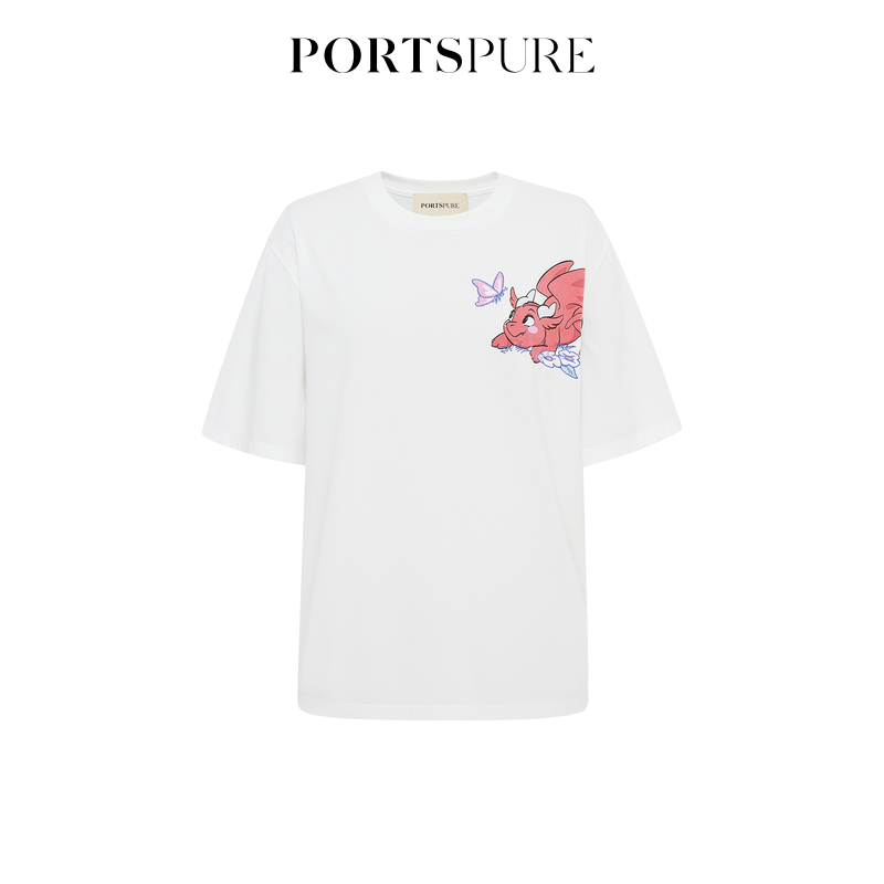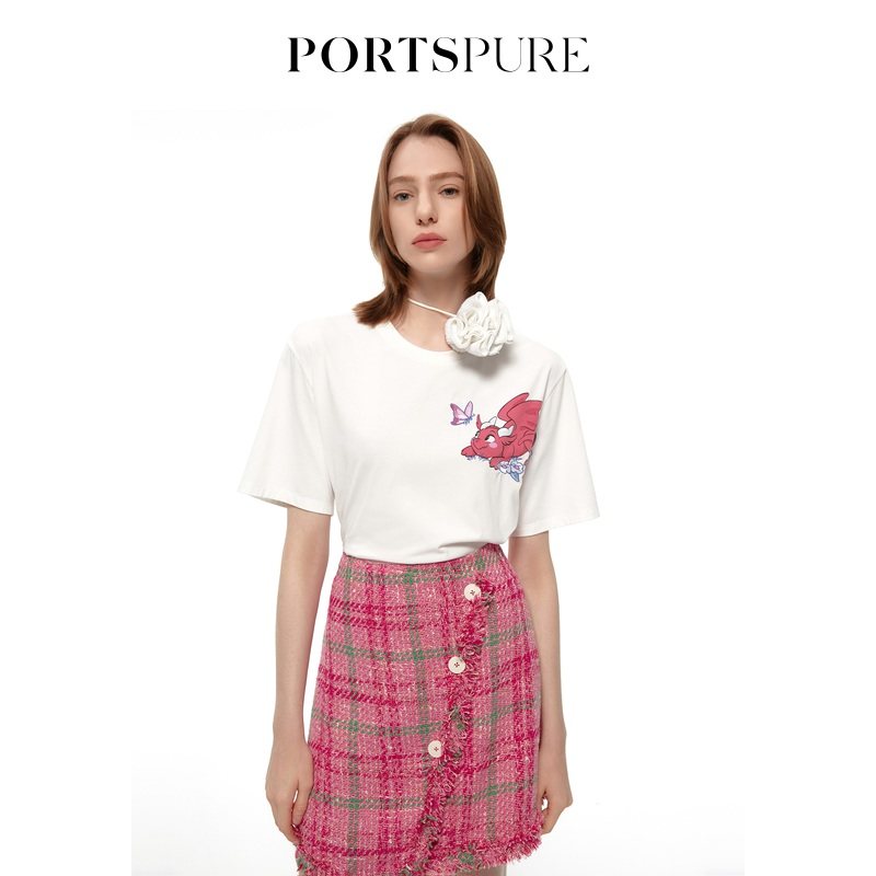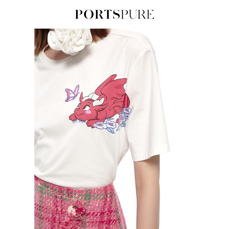 【博主同款】宝姿PORTSPURE女装时尚百搭简约印花宽松休闲短袖T恤