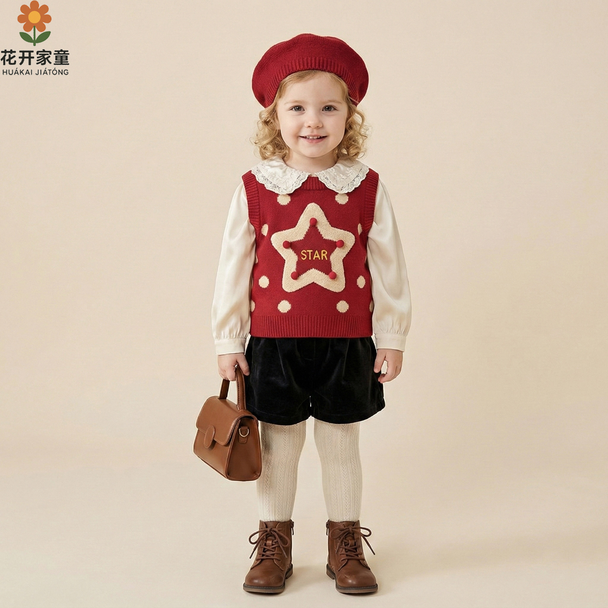 女童马甲毛衣加绒秋冬针织女宝宝红色小背心婴儿童马夹女孩毛线衣