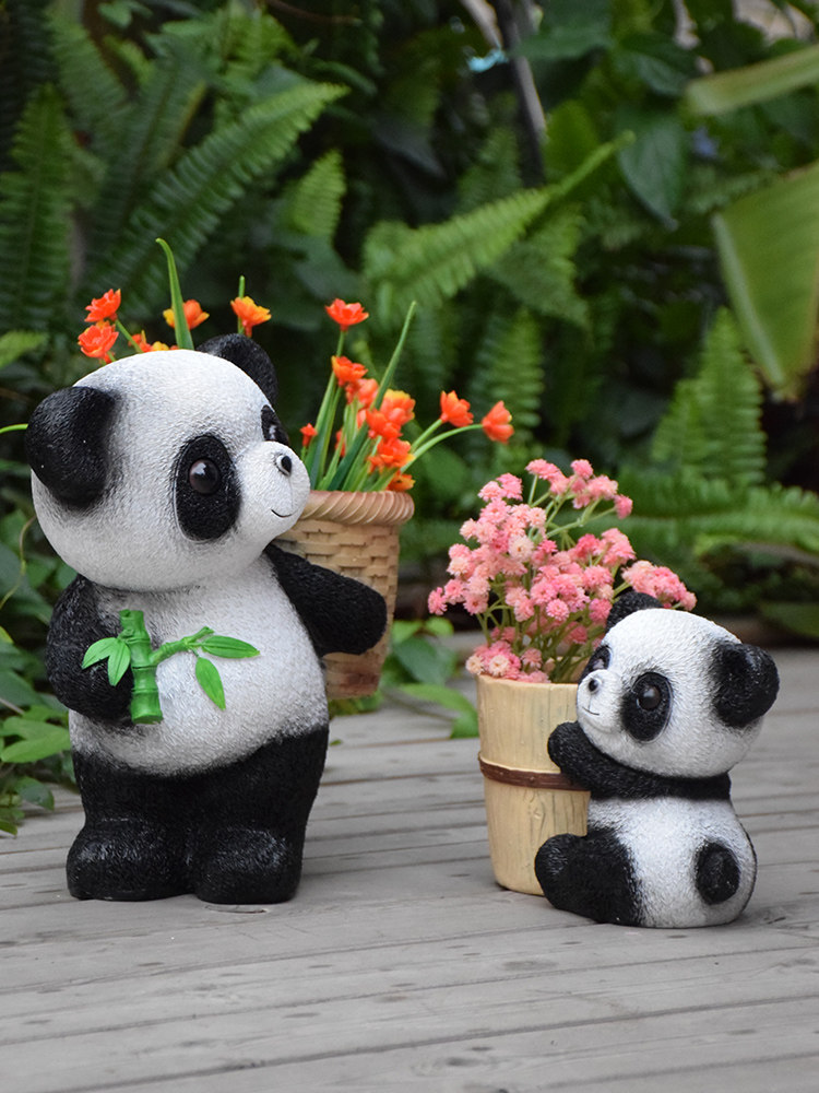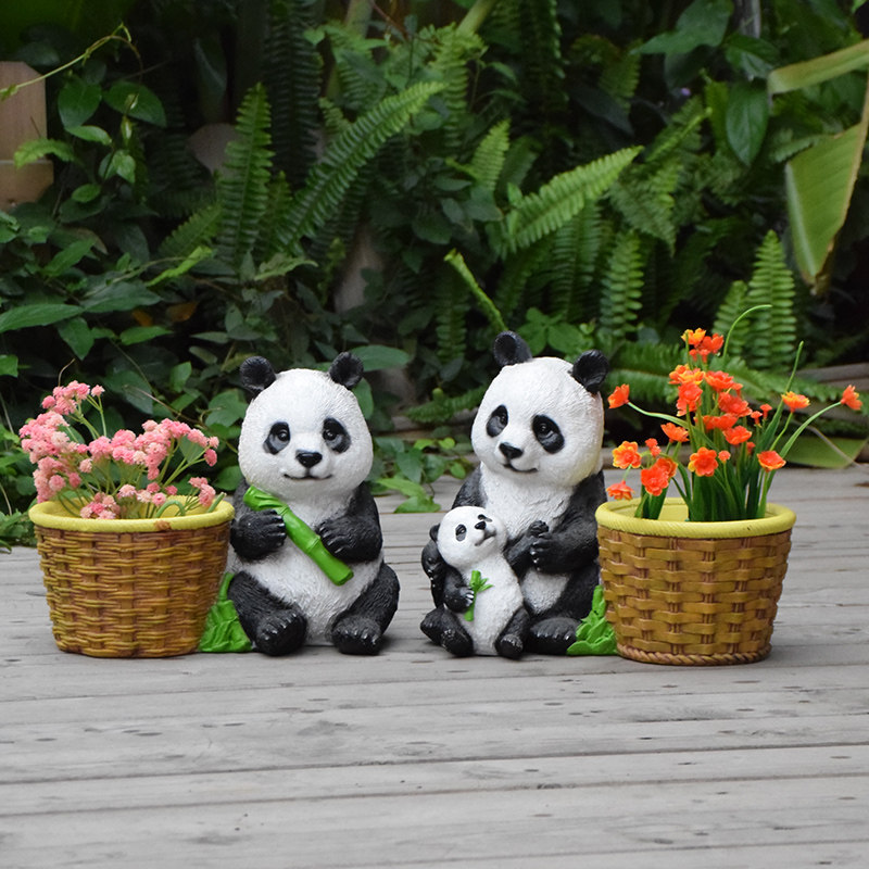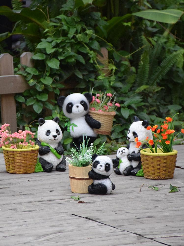 户外花园仿真熊猫小摆件花缸庭院卡通动物树脂装饰阳台多肉花盆