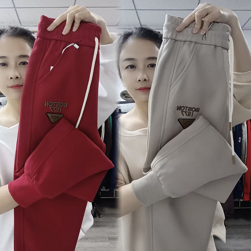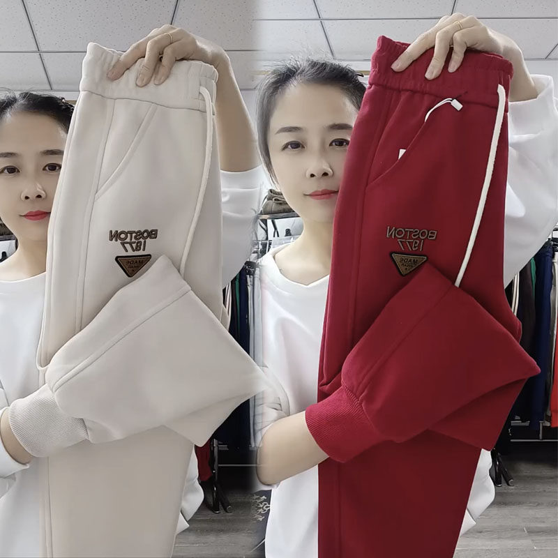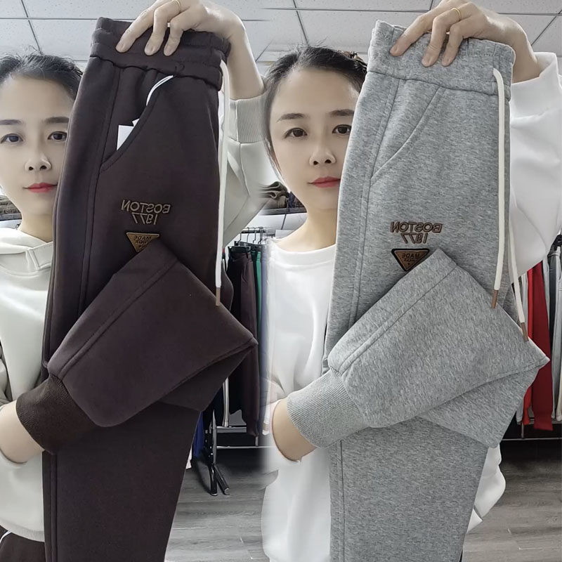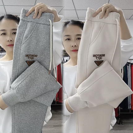 欧货冬季新款休闲裤女宽松显瘦哈伦裤高腰刺绣百搭卫裤束脚运动裤