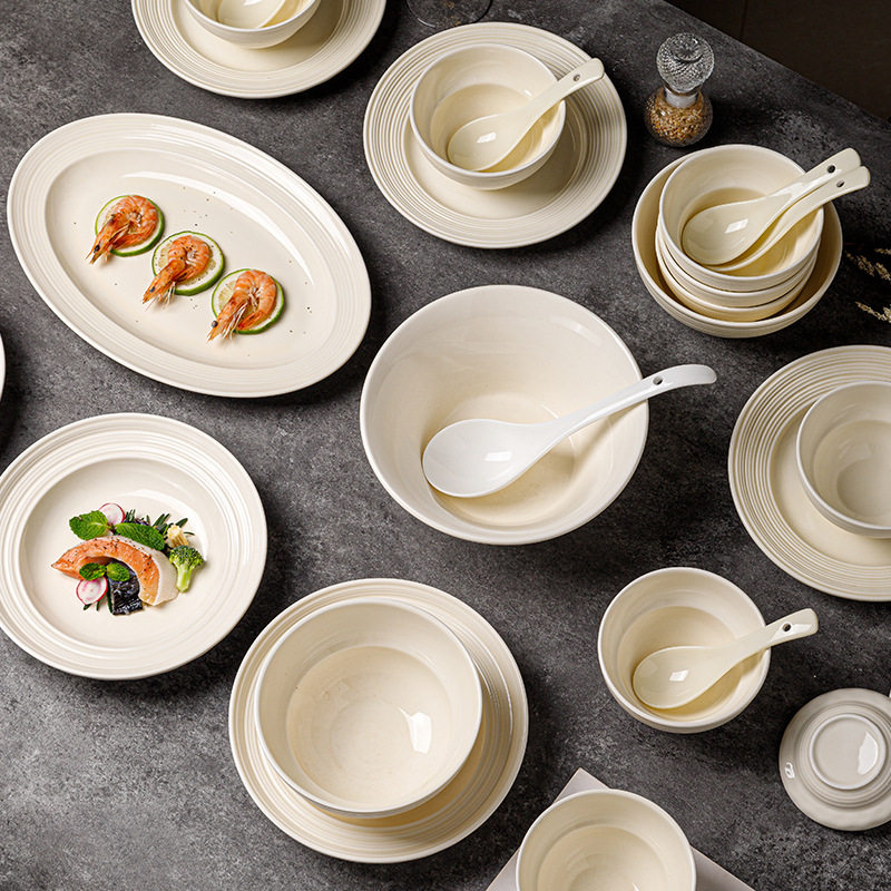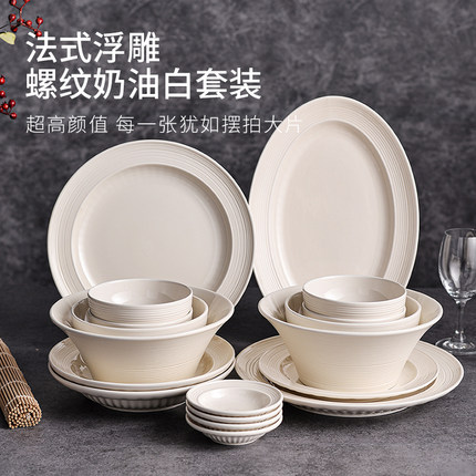 釉下彩奶白色高级感碗碟套装碗盘
