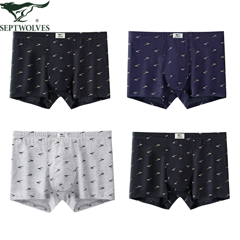 2条盒装 七匹狼内裤男纯棉抑菌男士平角裤印花中腰男式短裤裤头