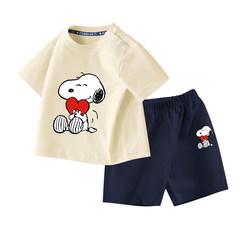 史努比男童短袖套装男孩薄款纯棉半袖上衣小童短裤五分裤儿童夏装