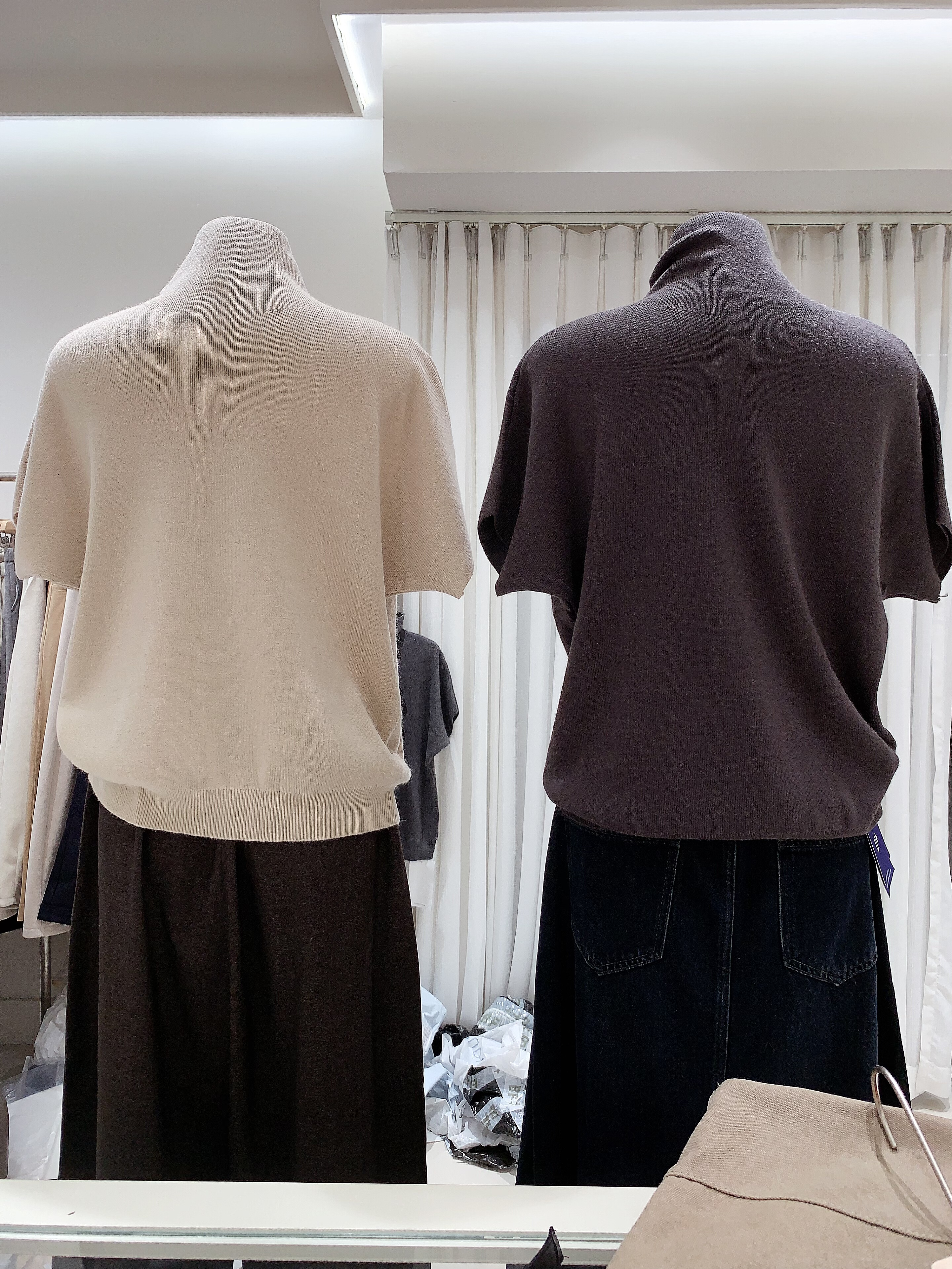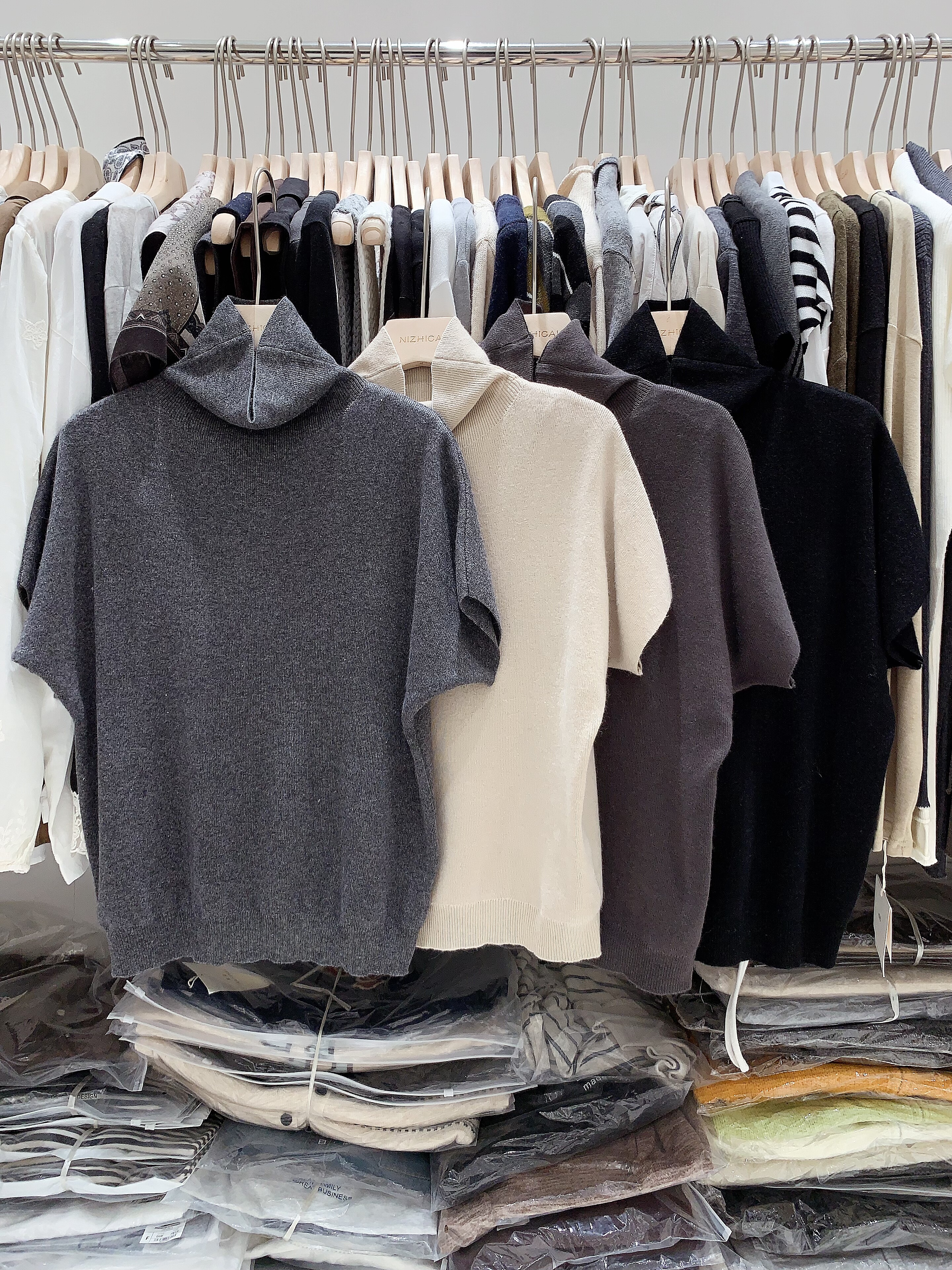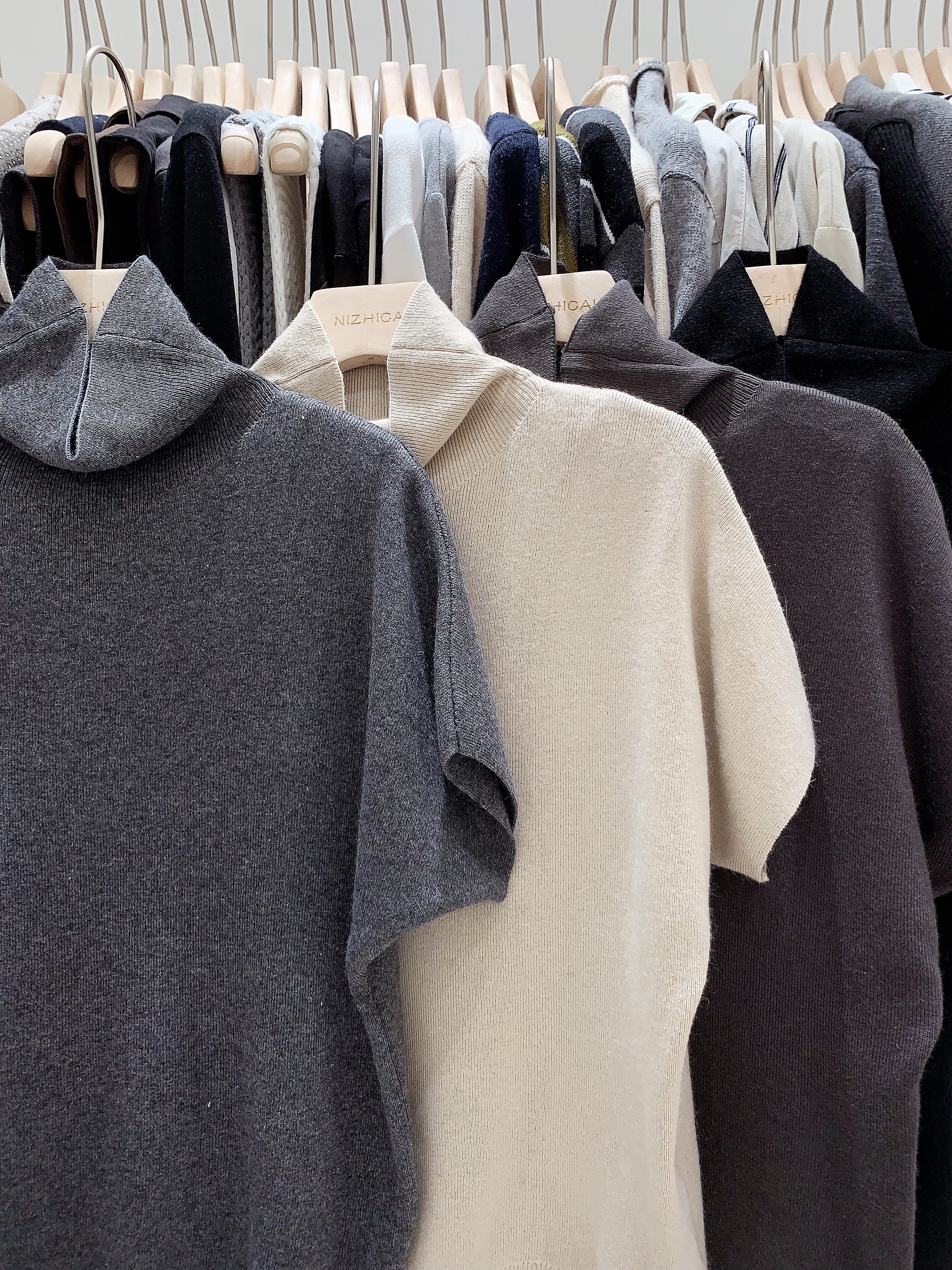 chic秋冬气质百搭半高领纯色打底衫修身显瘦短袖针织衫上衣女毛衣
