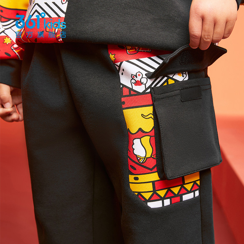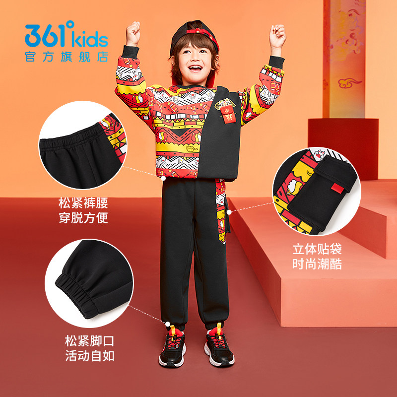 【新年款】361童装男童针织长裤2026春季新款拜年红色运动裤